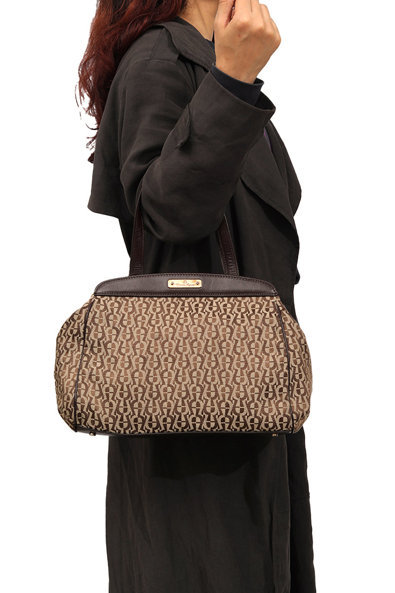 Aigner Brown Monogram Shoulder Bag comes in this Stunning Beige color .It falls under our pristine Condition Category. No visible wear and tear or fading can be seen