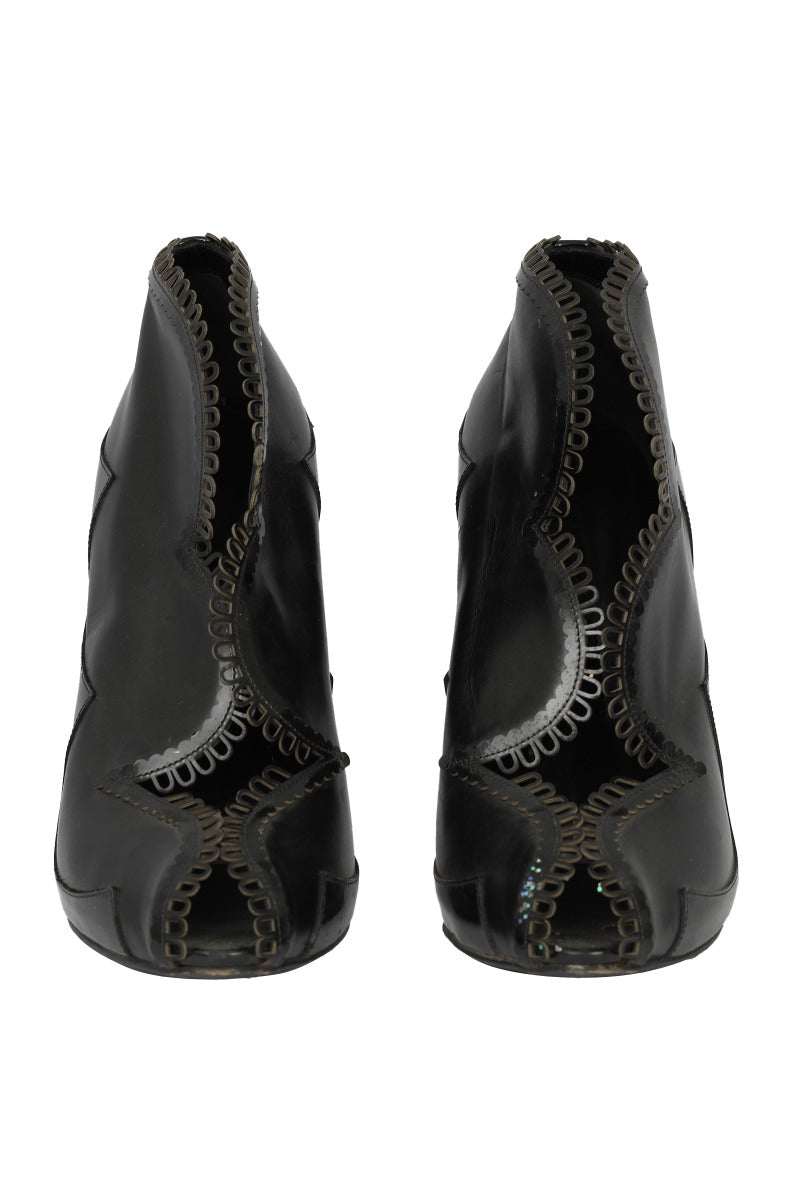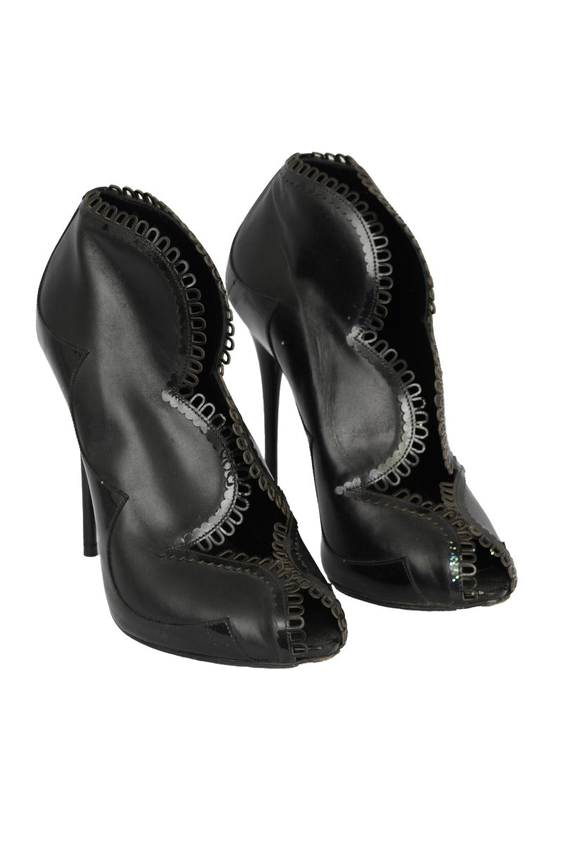 ALEXANDER SIZE 38 MCQUEEN PEEP TOE PUMPScomesin this stunning Black color. It falls under our Pristine Condition Category. No visible wear and tear or fading can be seen.