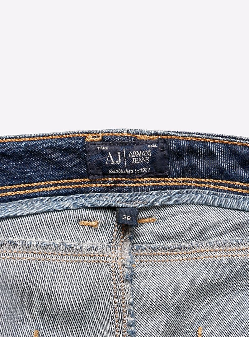 Smarten up their casual wardrobe with this Skinny blue denims from Armani Jeans. This stretchable denim come with a logo button in the front with the brand's iconic logo patch at the back. Two pockets to the front & two at the back. Armani's iconic logo can be seen Near the front & the back pocket. Style with a trendy t-shirt from the collection.