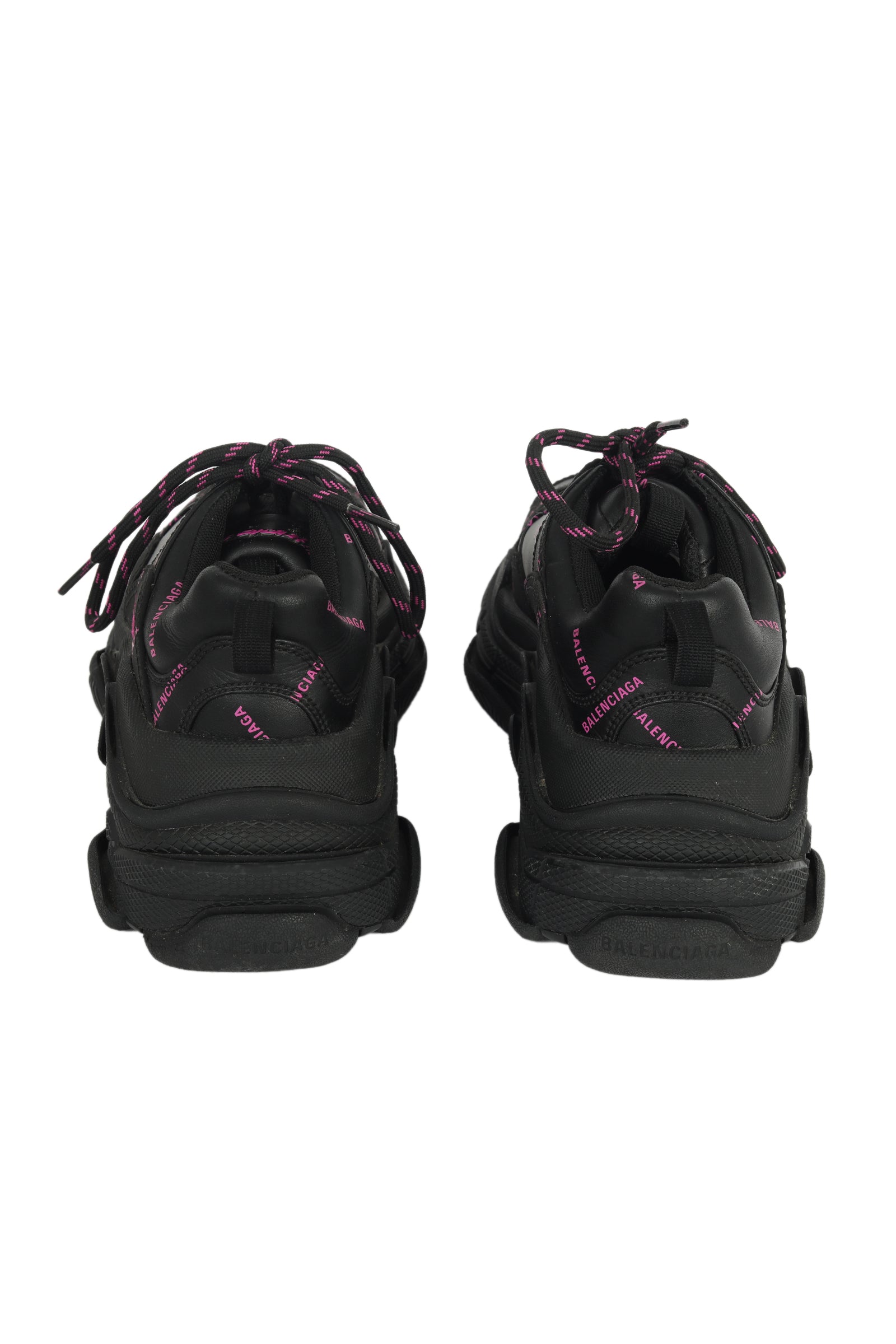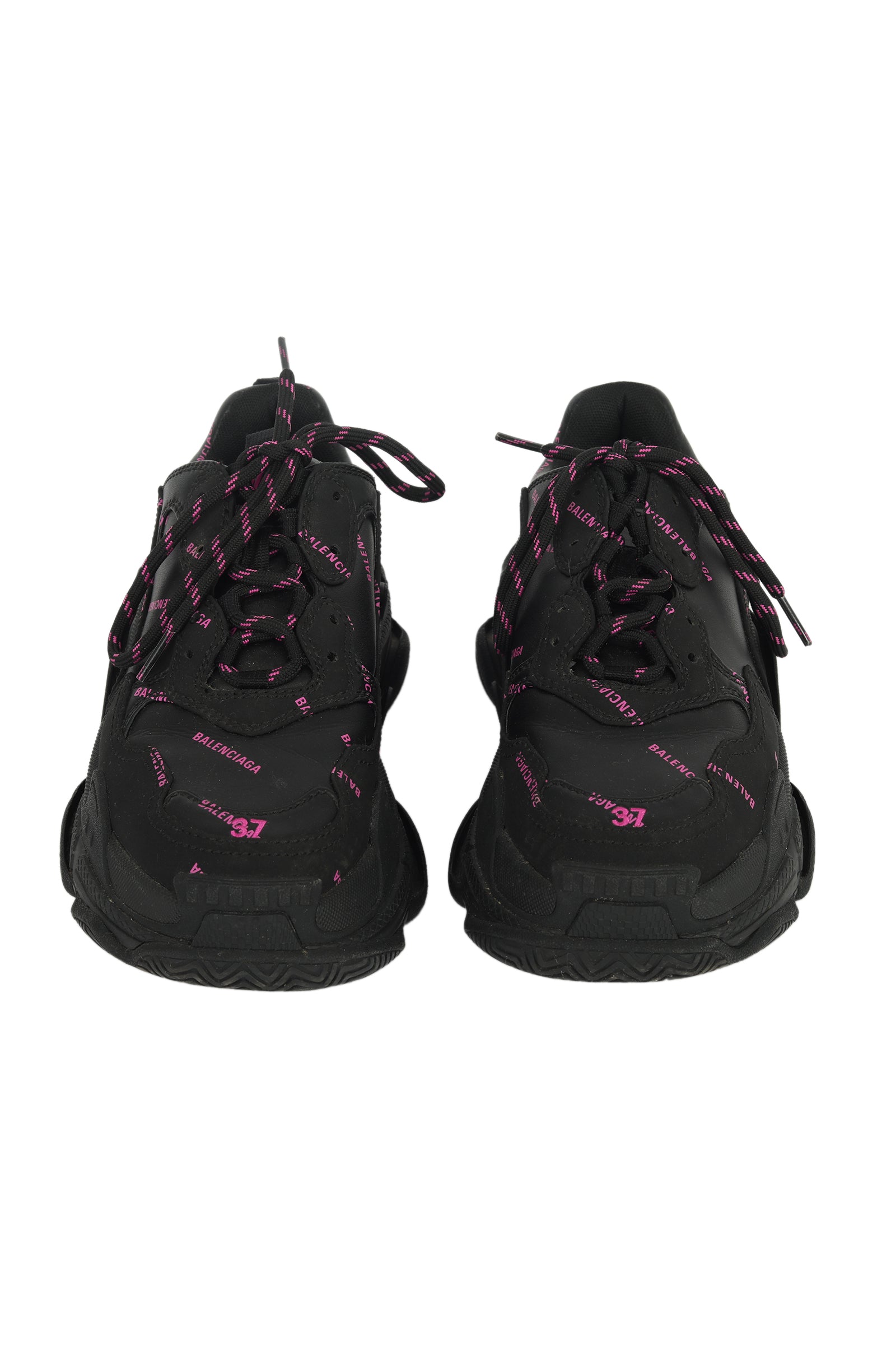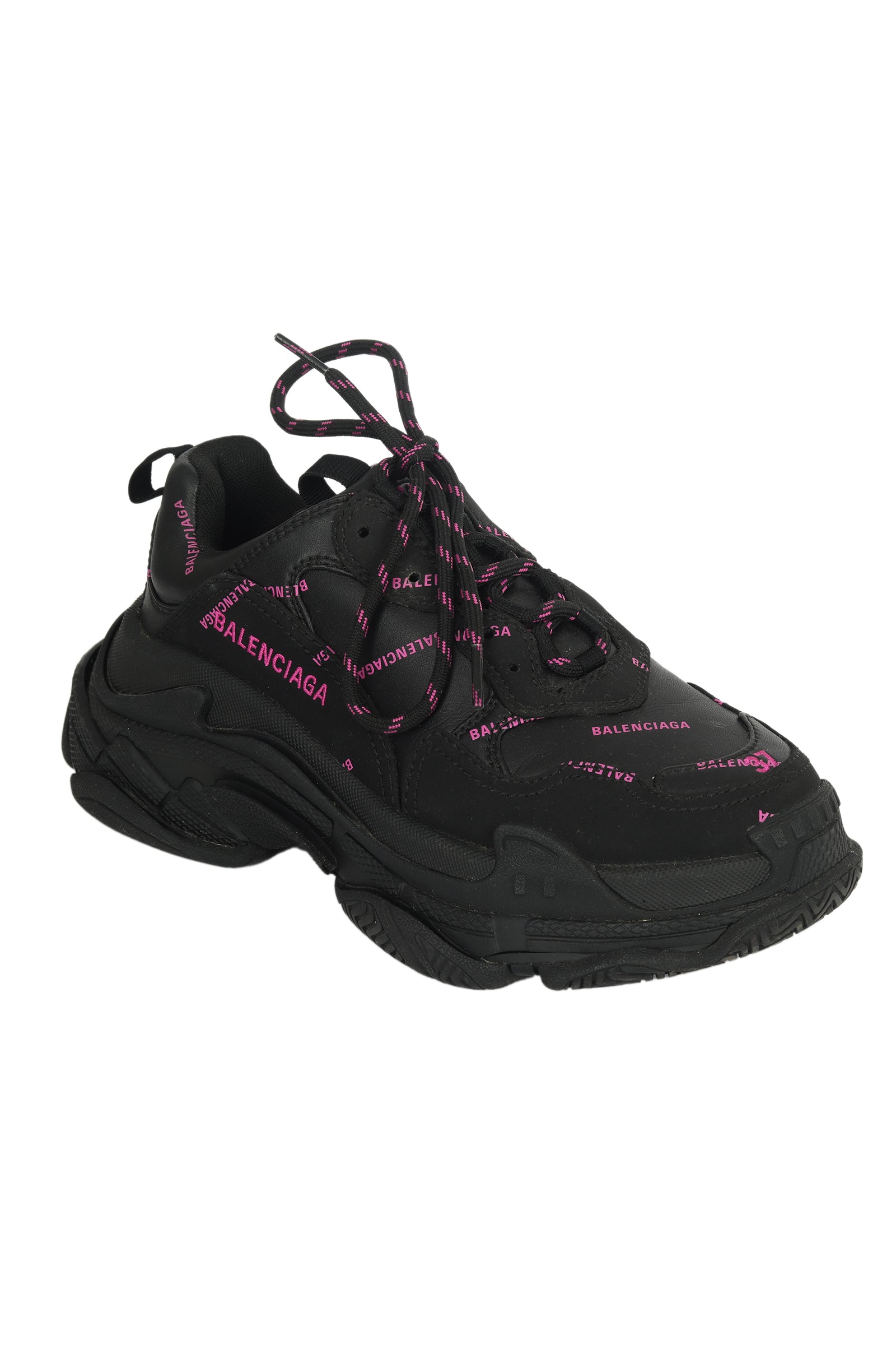 Balenciaga EU 37 Black/Pink Logo Print Leather Triple S Sneakers comes in this stunning Black color. It falls under our Like New Condition Category. No visible wear and tear or fading can be seen