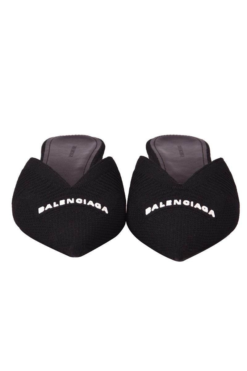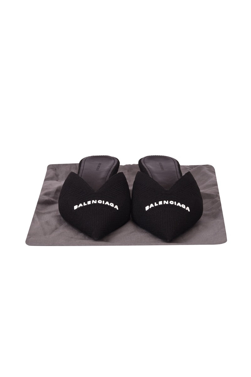 Balenciaga Knife Knit Textured Mules comes in this stunning Black color. It falls under our Like New Tags Condition Category. No visible wear and tear or fading can be seen
