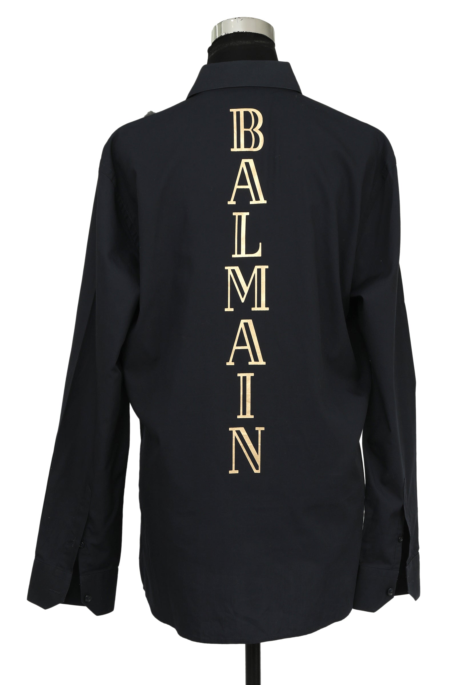 Balmain Size L Golden Logo Shirt comes in thisStunning BLACK color. It falls under our Pristine Condition Category. No visible wear and tear or fading can be seen.