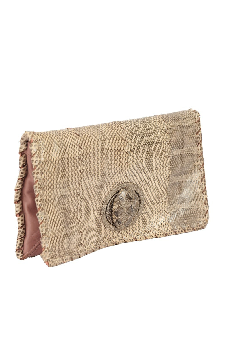 Bottega Veneta Beige Snakeskin Clutch