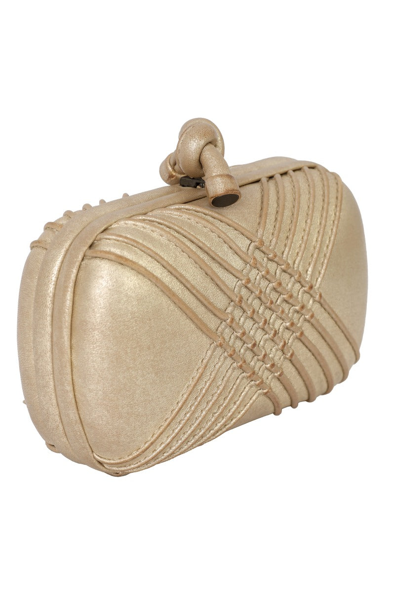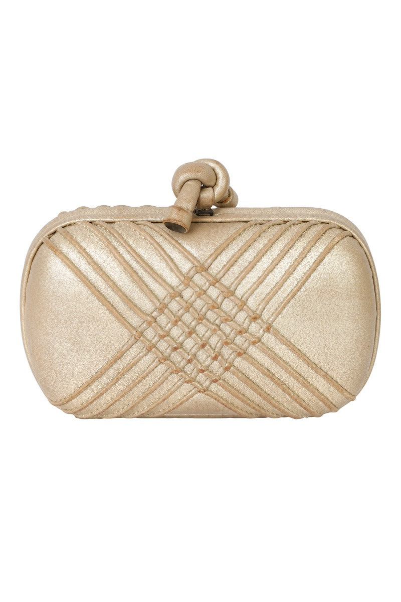 BOTTEGA VENETA CRISS-CROSS LEATHER KNOT CLUTCH comes in this Stunning Gold color .It falls under our Pristine Condition Category.