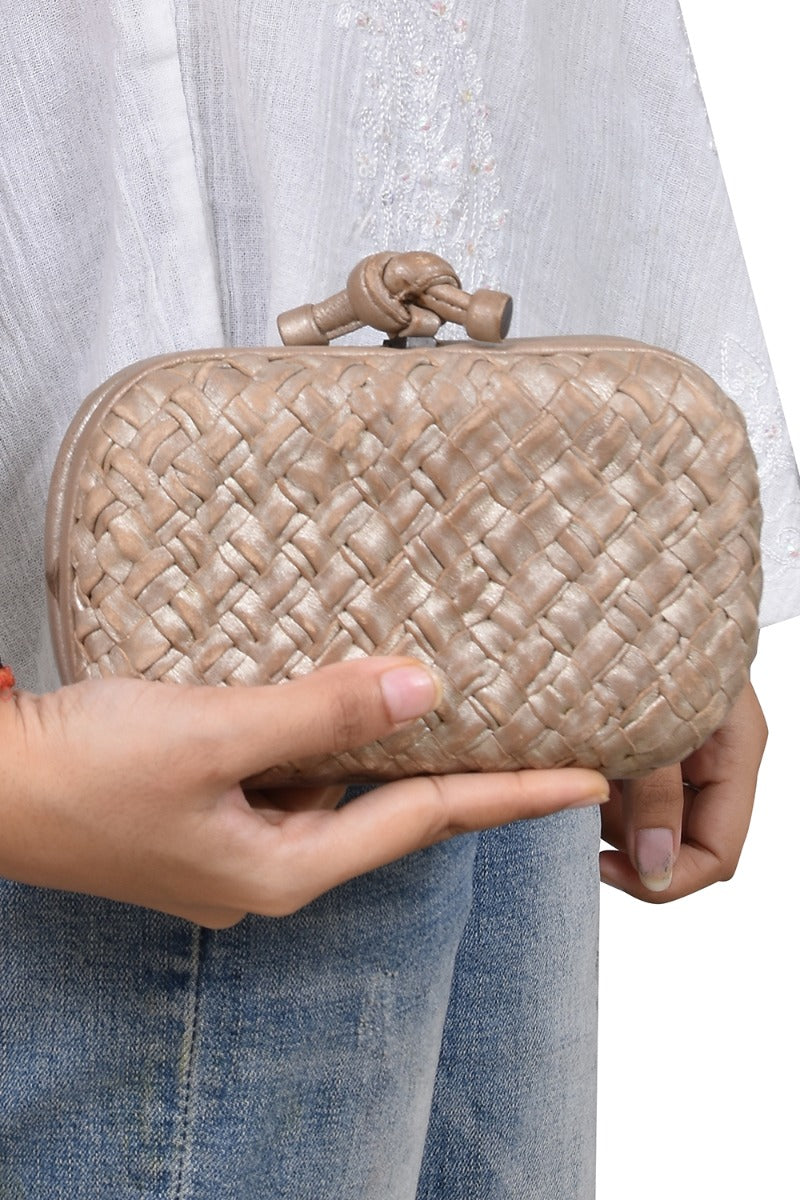 Bottega Veneta Intrecciato Knot Clutch comes in this Stunning Goldencolor .It falls under our Good Condition Category