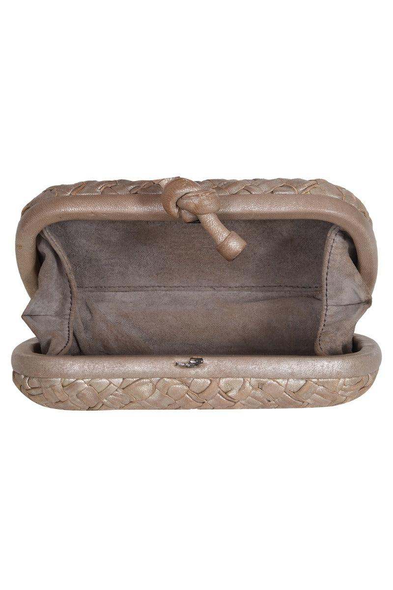 Bottega Veneta Intrecciato Knot Clutch comes in this Stunning Goldencolor .It falls under our Good Condition Category