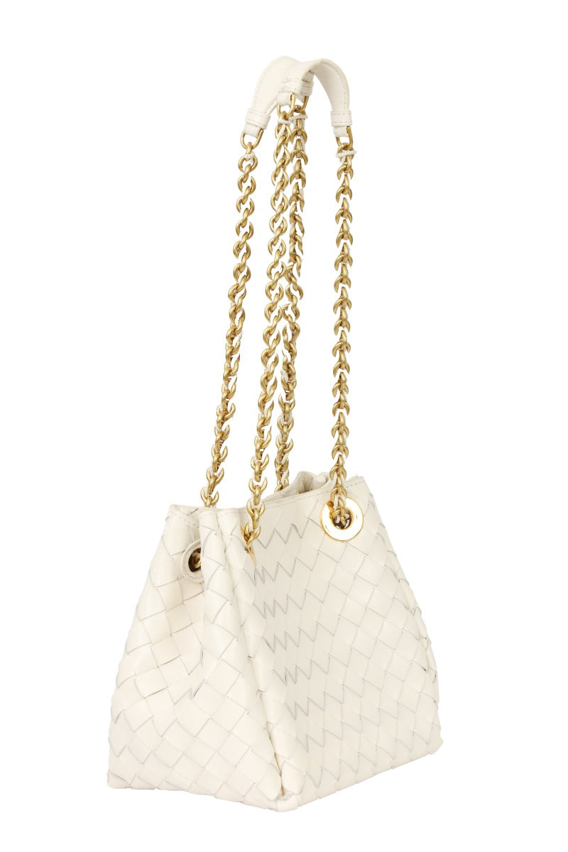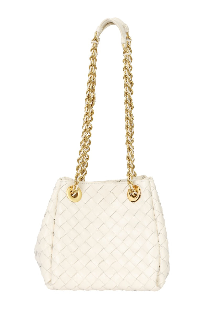 BOTTEGA VENETA SMALL PARACHUTE CHAIN BAG comes in this Stunning White color .It falls under our Like New Condition Category.