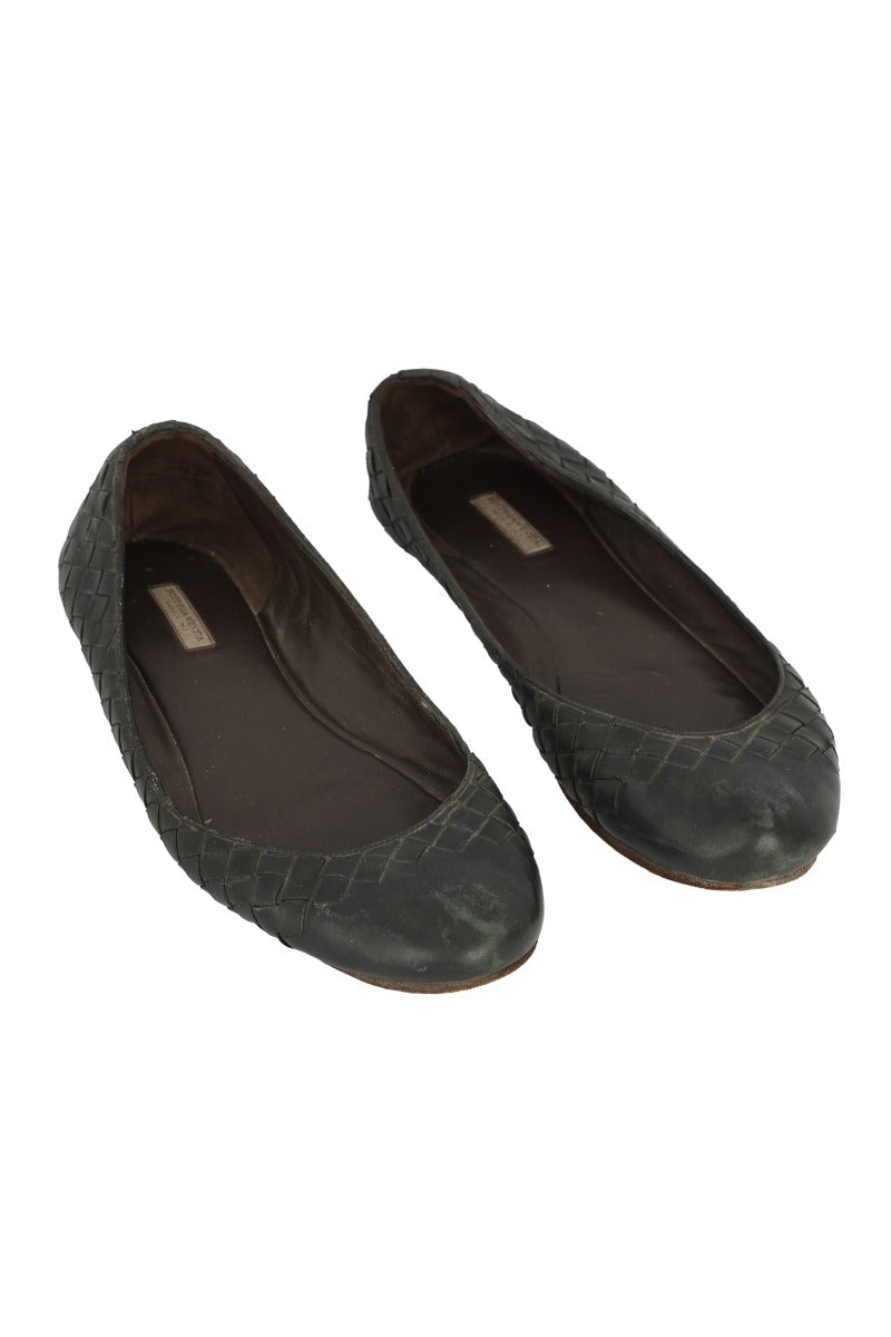 Bottega Venta Size EU-38 Black Intercciato Ballet Flats