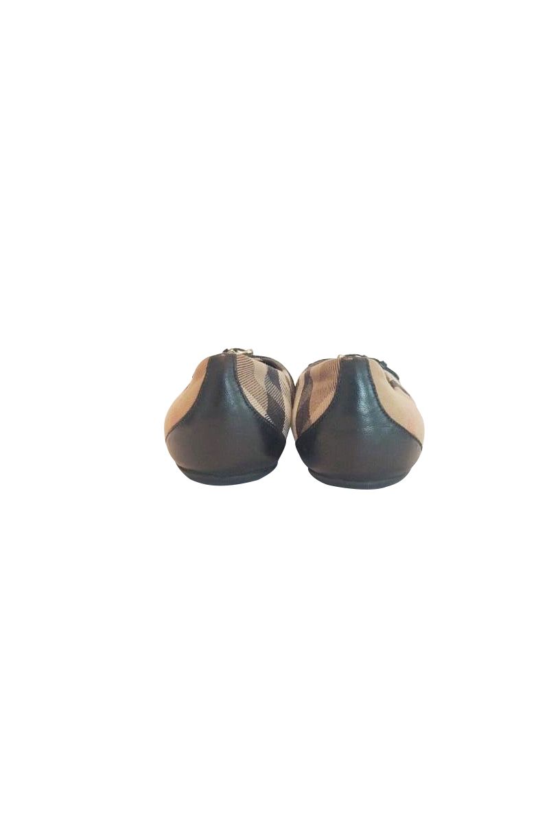 BURBEERY NOVA CHECK BALLERINA FLATS comes in this stunning black and brown color. This product falls in good condition Category No visible wear and tear can be seen. Very slight scratches on the hardware are visible.