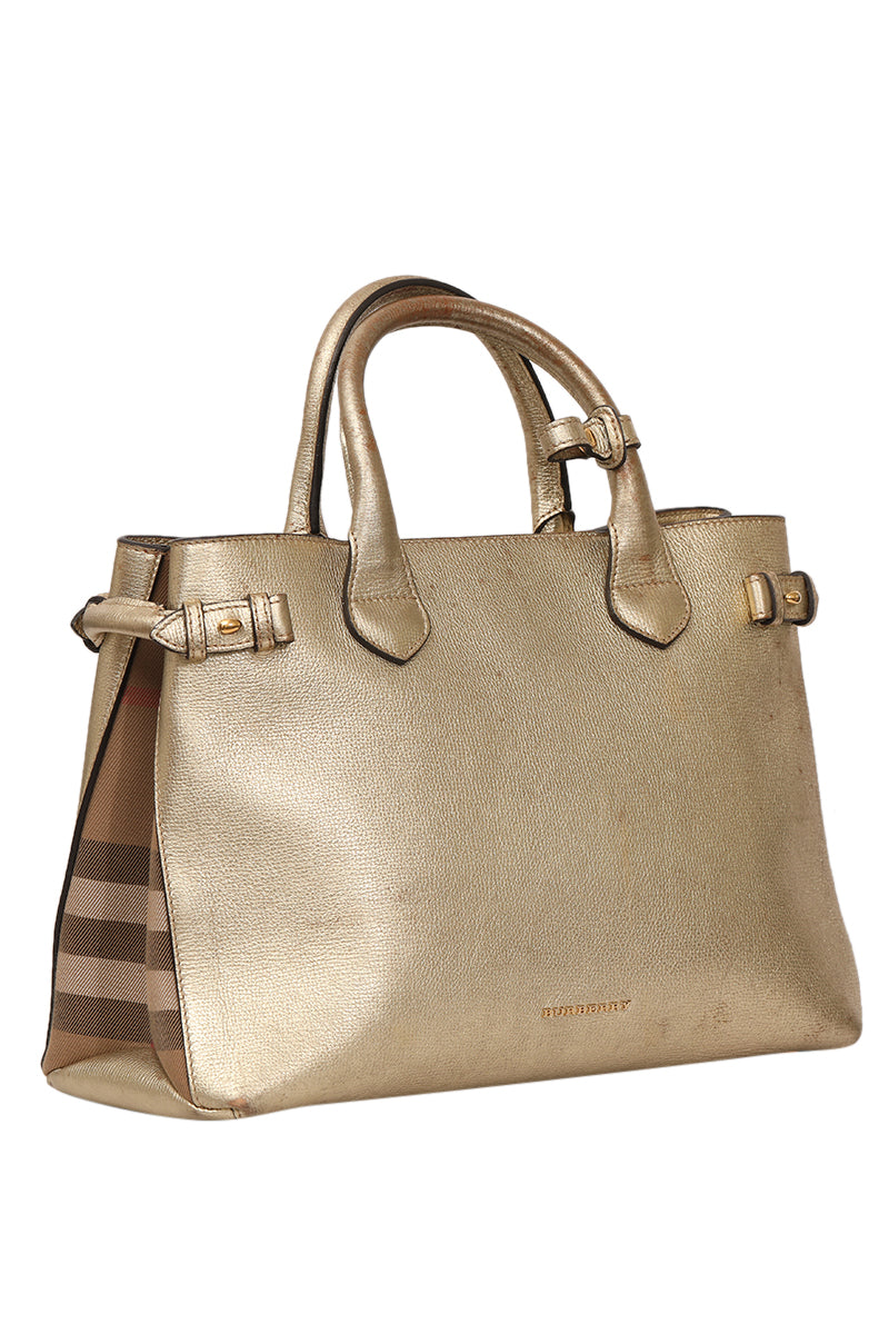 BURBERRY BANNER TOTE MEDIUM BAGcomes in this Stunning Golden color .It falls under our Pristine Condition Category. No visible wear and tear or fading can be seen