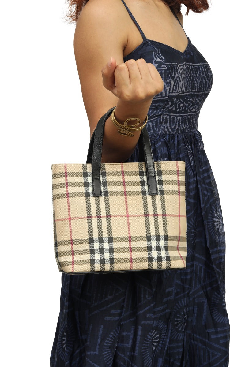 Burberry Beige Haymarket Check Coated Canvas And Leather Small Tote comes in this Stunning Beige color .It falls under our Pristine Condition Category. No visible wear and tear or fading can be see