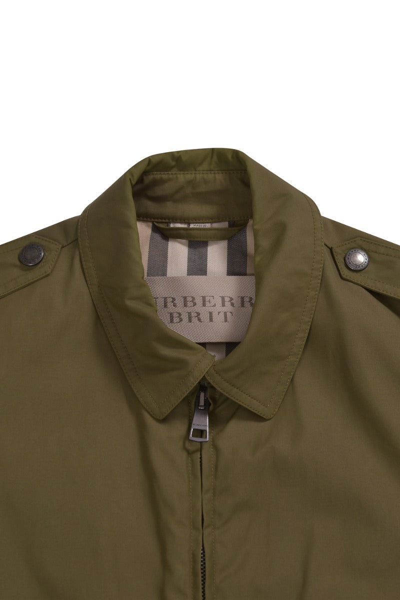 Burberry Brit Jacket comes in this Stunning Olive Green color. It falls under our Pristine Condition Category. No visible wear and tear or fading can be seen.