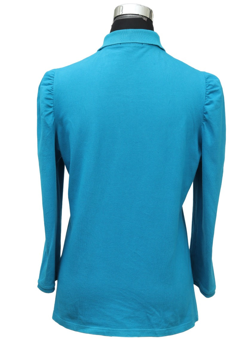 Burberry Brit Size L Blue Ruffled Sleeves T Shirt comes in this Stunning blue color. It falls under our Pristine Condition Category. No visible wear and tear or fading can be seen