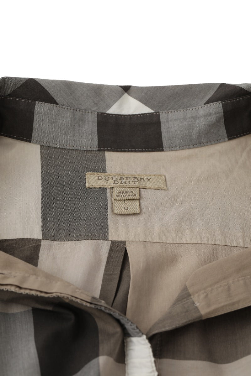 BURBERRY BRIT SIZE L NOVA CHECK PATTERNED COTTON SHIRT comes in this Stunning Beige color. It falls under our Pristine Condition Category. No visible wear and tear or fading can be seen.