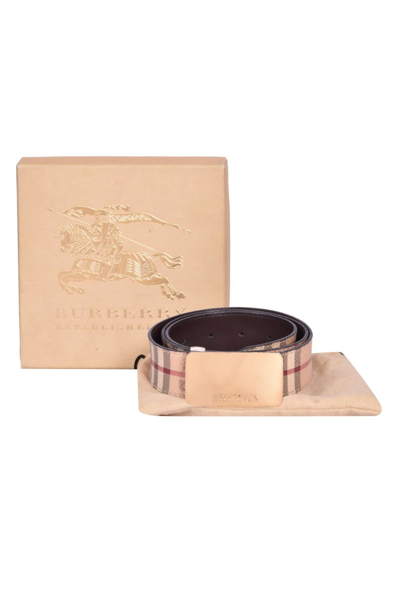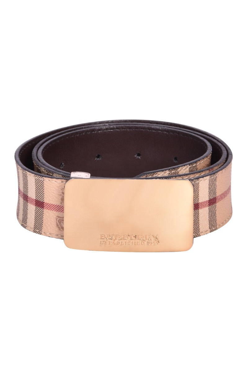 Burberry Coated Canvas Haymarket Checks Belt Comes in this stunning Beige color. It falls under our Used Fairly Well Condition Category