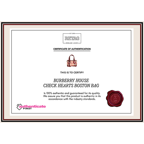 BURBERRY HOUSE CHECK HEARTS BOSTON BAG comes in this Stunning Burgundy color .It falls under our Pristine Condition Category. No visible wear and tear or fading can be seen.