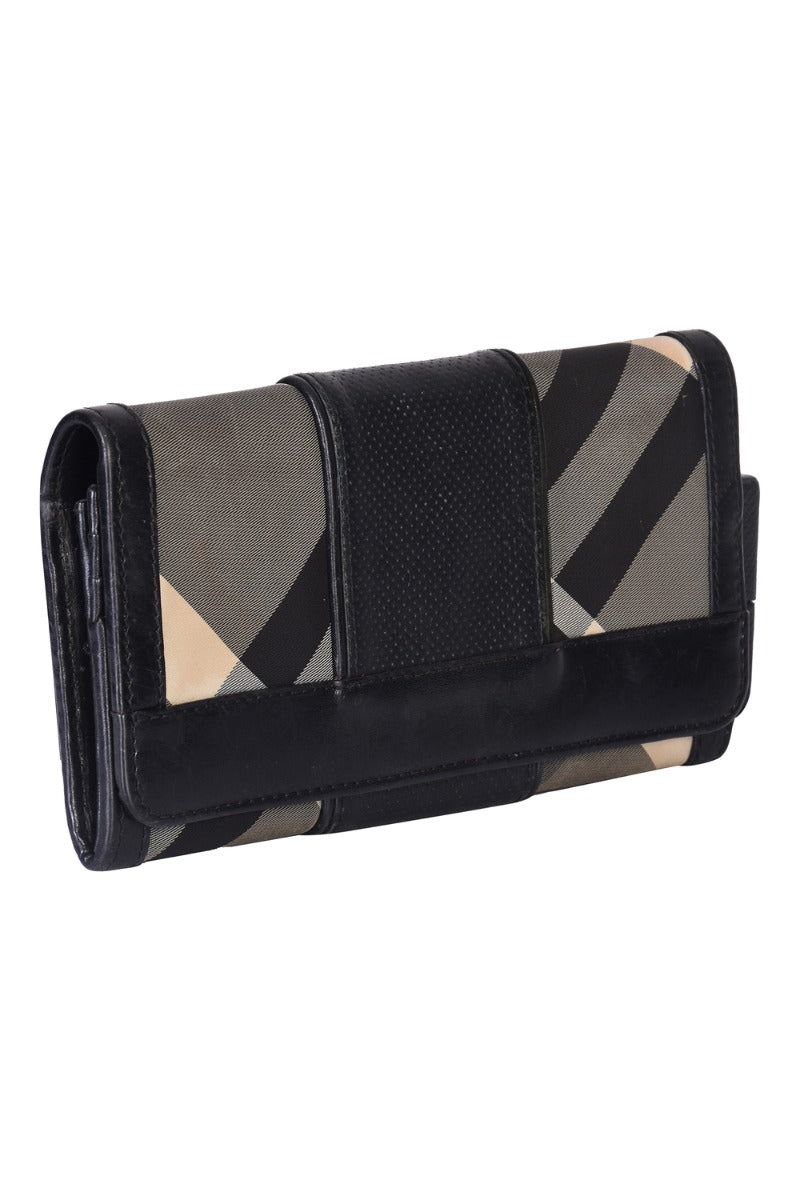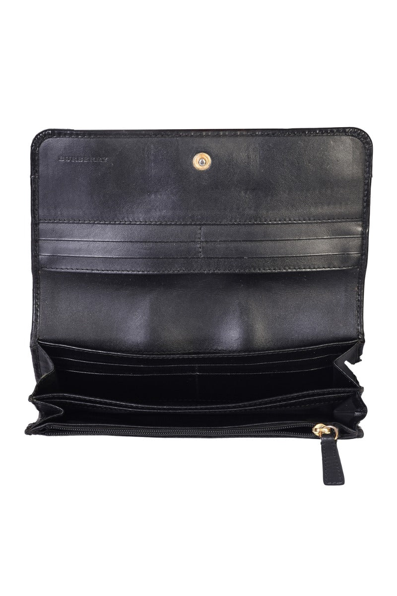 BURBERRY NOVA CHECKS WALLET comes in this Stunning Black color .It falls under our Good Condition Category. No visible wear and tear or fading can be seen.