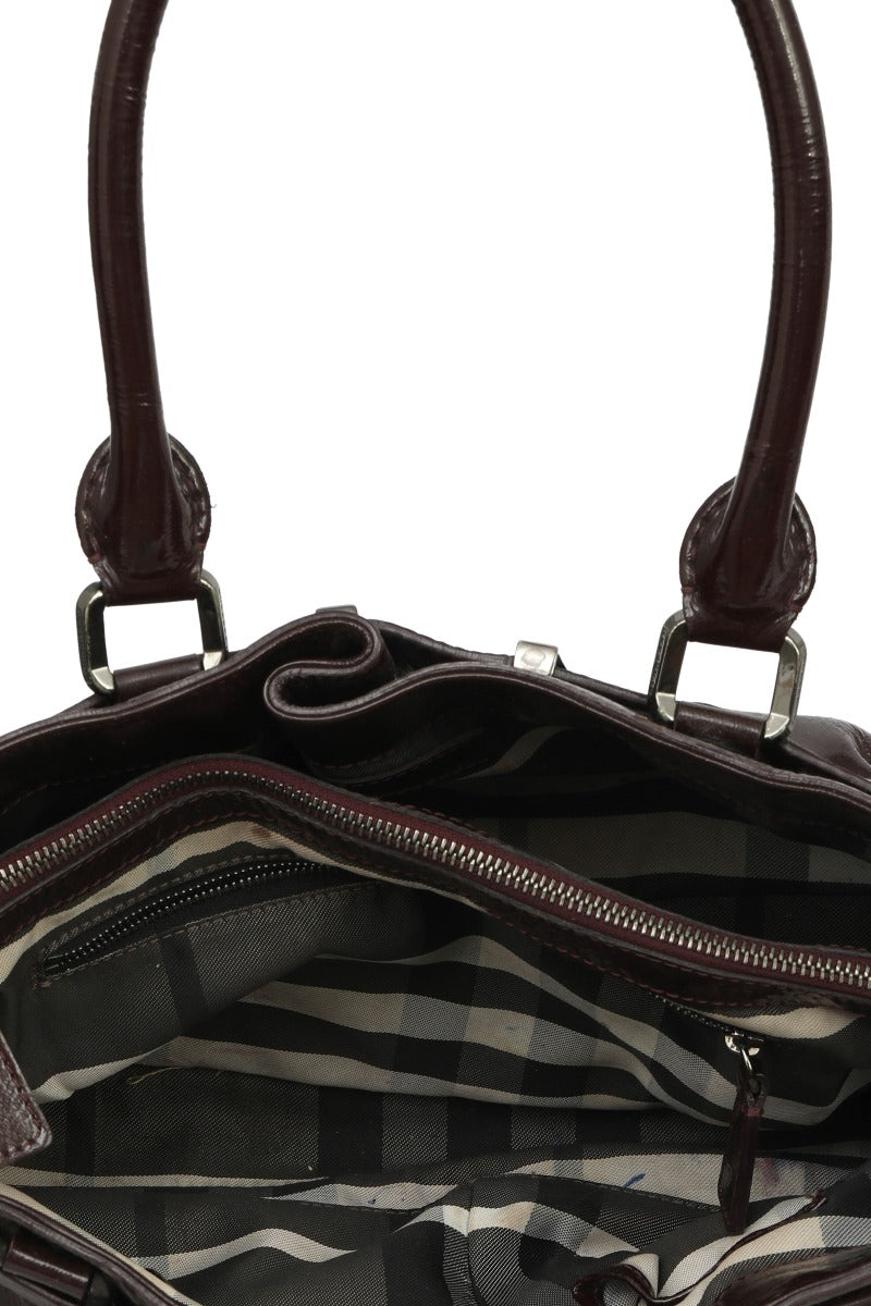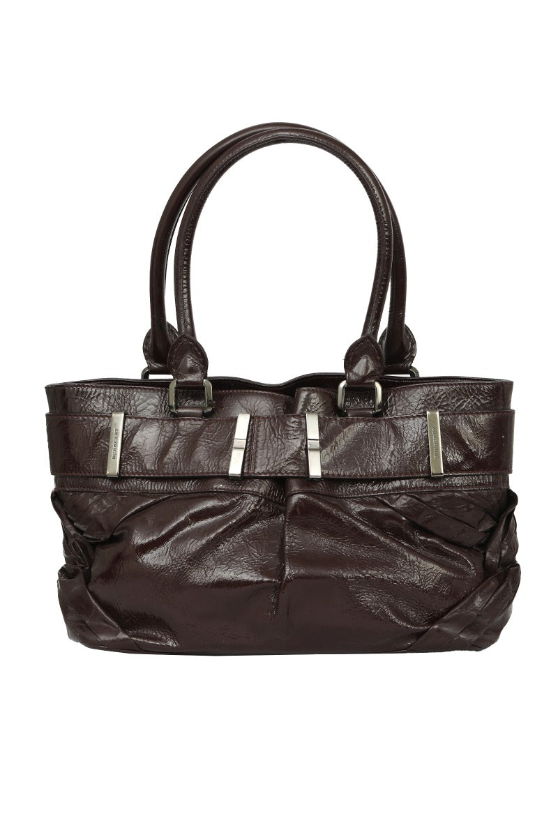 Burberry Patent Leather Healy Hobo Bag comes in this Stunning BROWN color .It falls under our PRISTINE Condition Category. No visible wear and tear or fading can be seen.