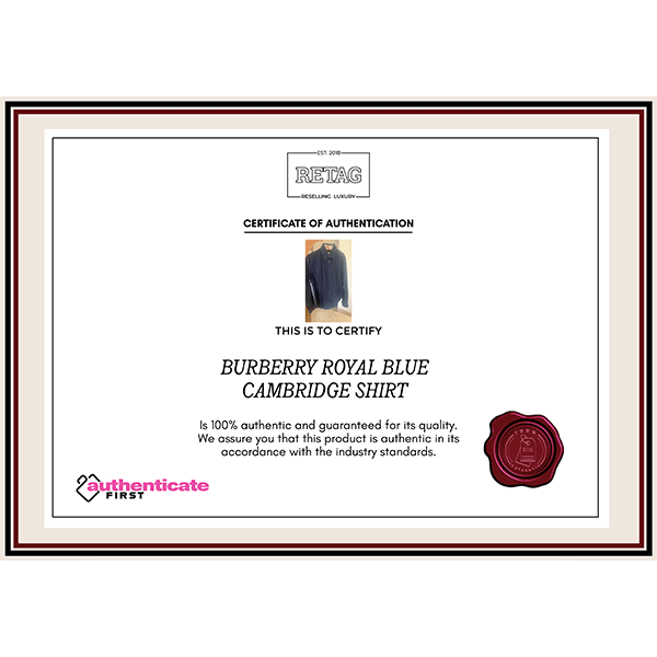 BURBERRY CAMBRIDGE SHIRT comes in this stunning Royal Blue Color. The shirt falls in our Pristine Condition Category. No visible wear & tear can be seen.