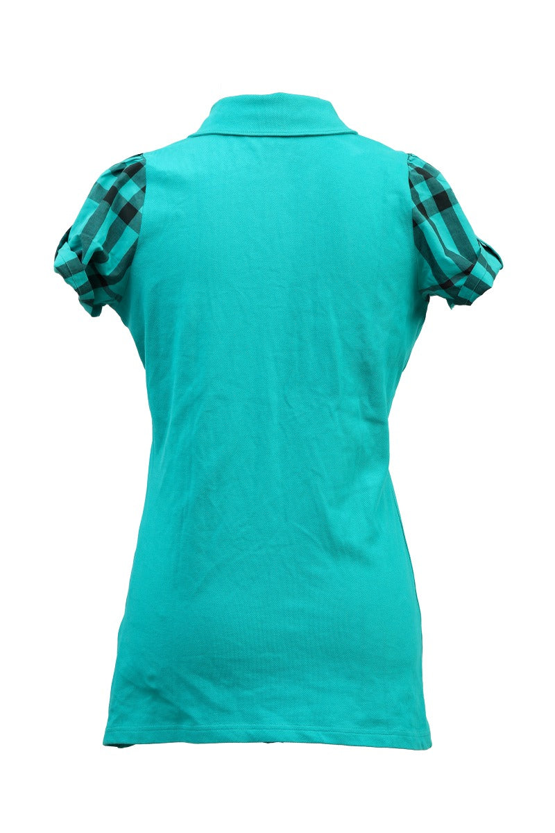 BURBERRY SIZE L BRIT POLO SHIRT comes in this Stunning Turquoise color. It falls under our Pristine Condition Category. No visible wear and tear or fading can be seen.