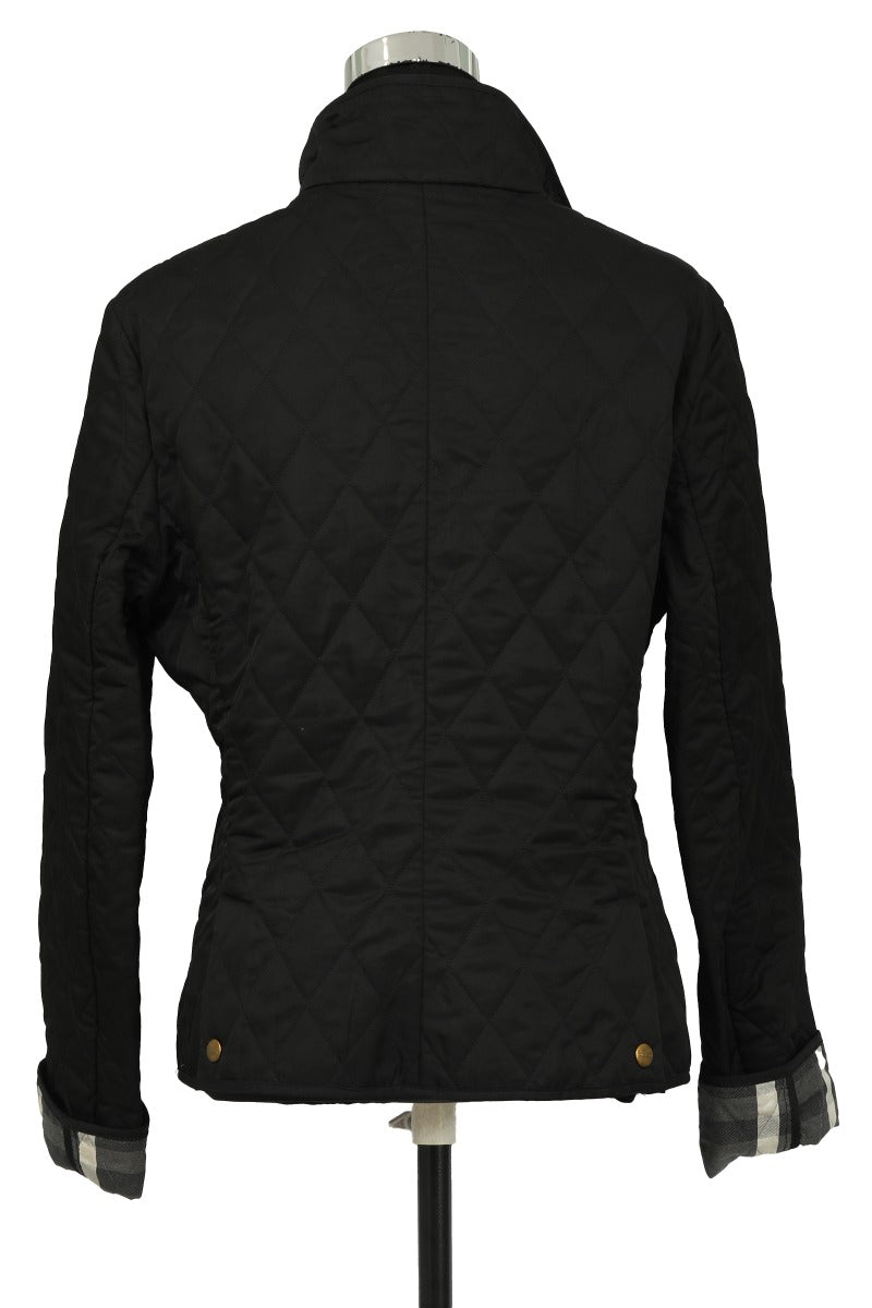 Burberry Size L Short Black Size Large Zip-up Quilted Jacket comes in this Stunning black color. It falls under our Pristine Condition Category. No visible wear and tear or fading can be seen.