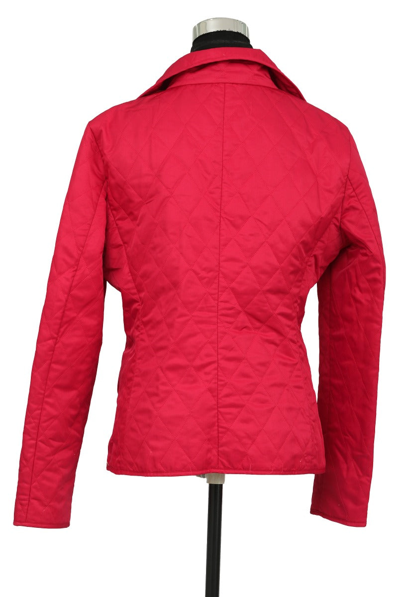Burberry Size L Short Crimson Size Large Quilted Jacket comes in this Stunning Crimson color. It falls under our Pristine Condition Category. No visible wear and tear or fading can be seen.