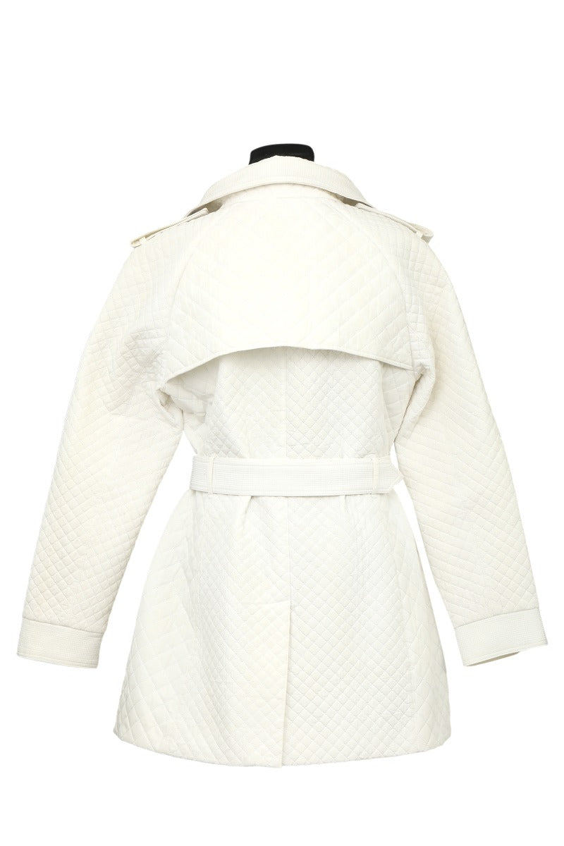 Burberry Size L White Quilted Long Jacket comes in thisStunning White color. It falls under our Pristine Condition Category. No visible wear and tear or fading can be seen.