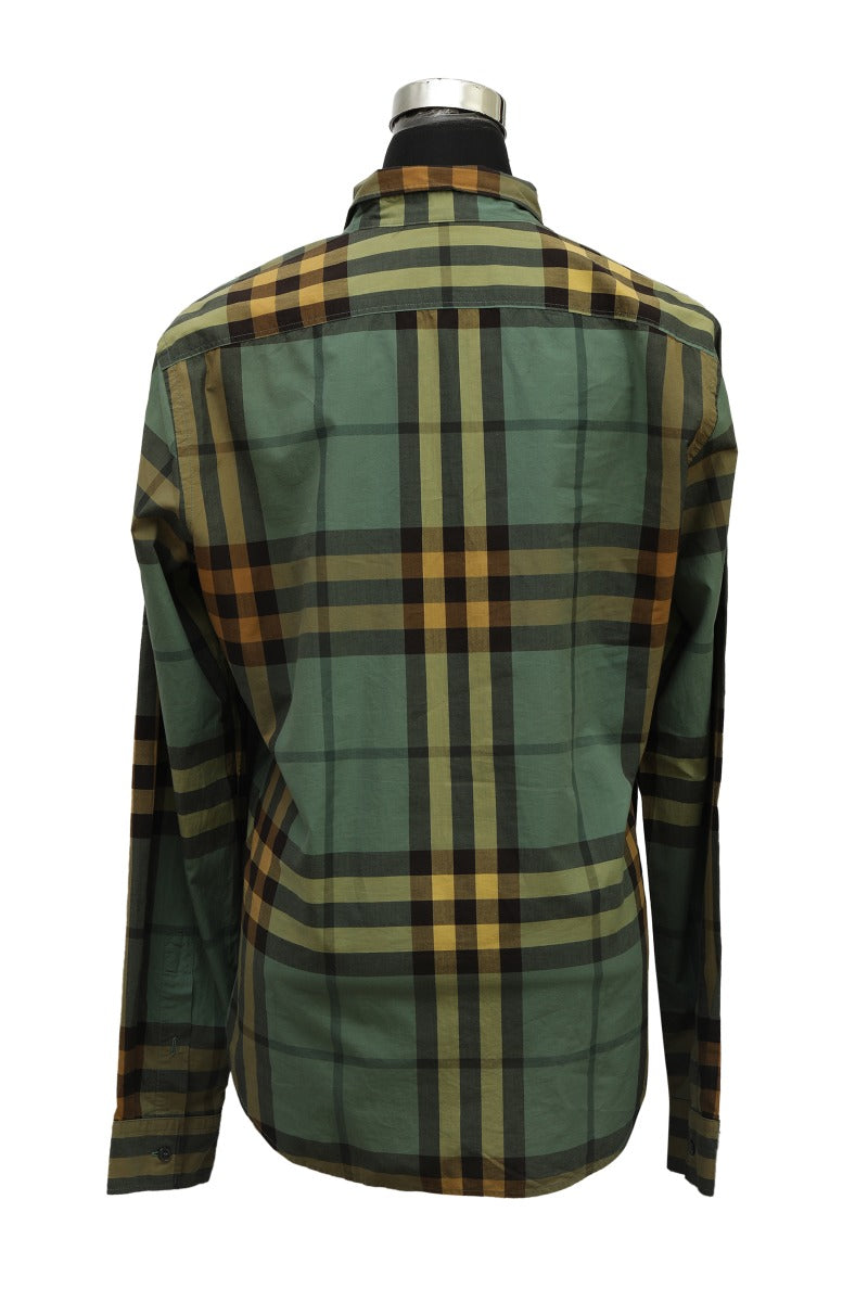 Burberry Size M Green Checkered Shirt comes in thisStunning Green color. It falls under our Pristine Condition Category. No visible wear and tear or fading can be seen