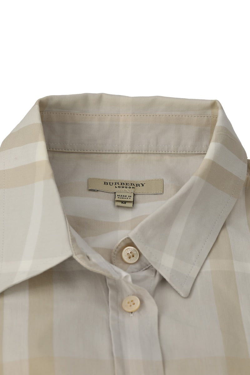 BURBERRY SIZE M GREY/BEIGE CHECKERED SHIRT comes in this Stunning Gray & Beige color. It falls under our Pristine Condition Category. No visible wear and tear or fading can be seen.