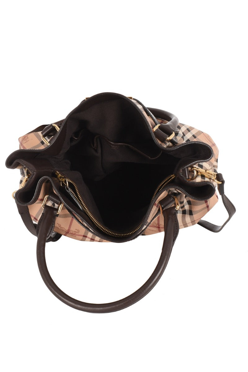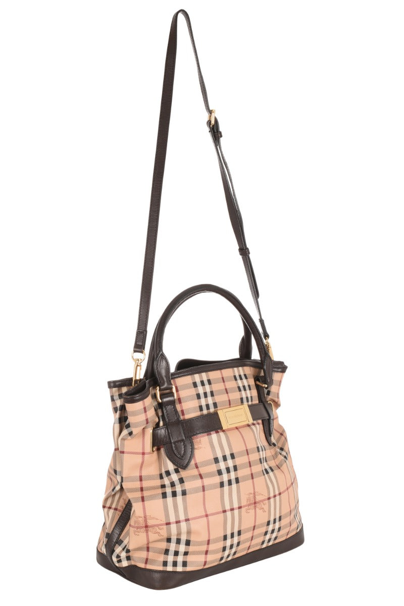 BURBERRY W HAY- MARKET CHECK BAG comes in this Stunning Beige color .It falls under our Never Been Used Condition Category. No visible wear and tear or fading can be seen.