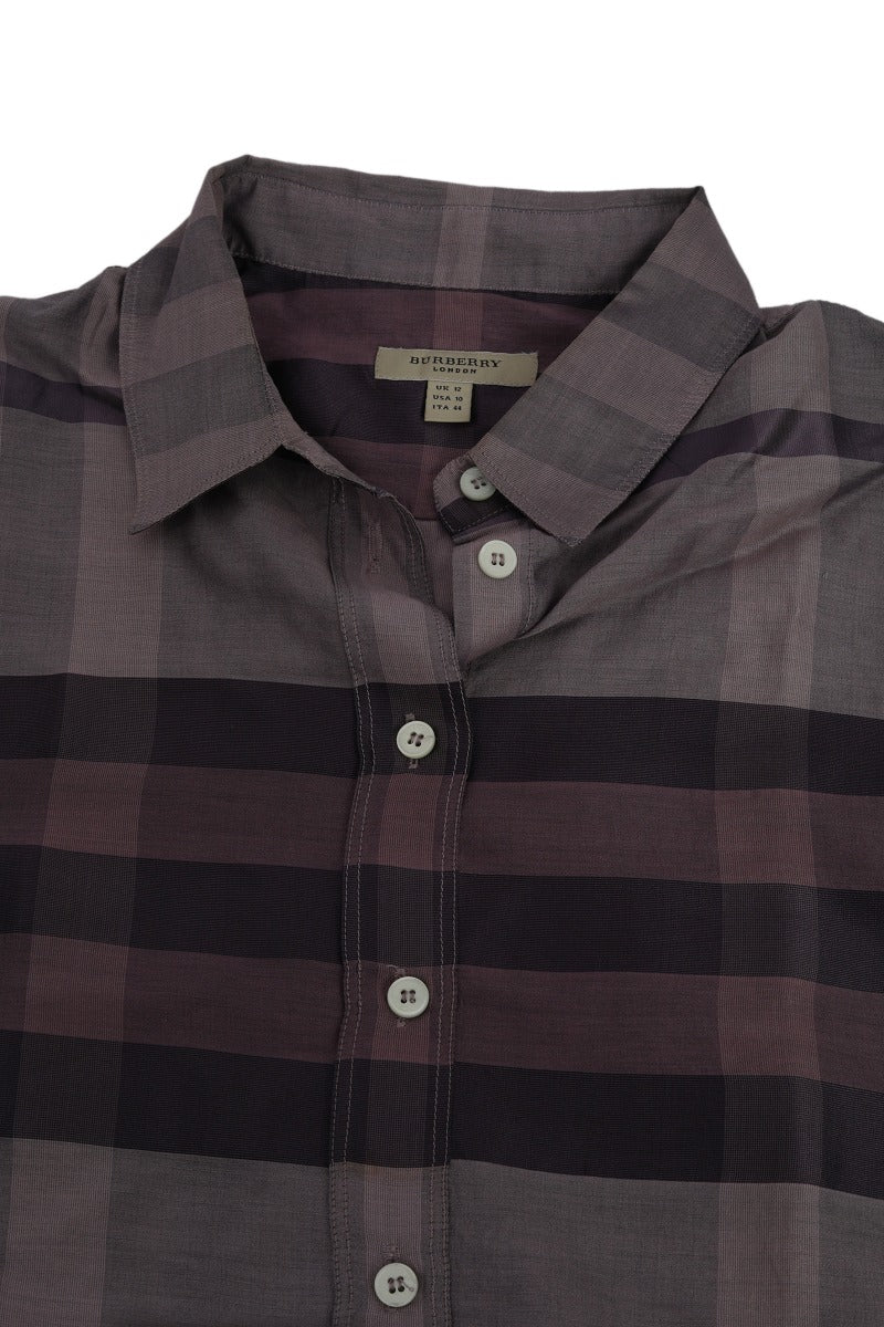 Burberry XL Purple Plaid Shirt comes in this Stunning Purple color. It falls under our Pristine Condition Category. No visible wear and tear or fading can be seen