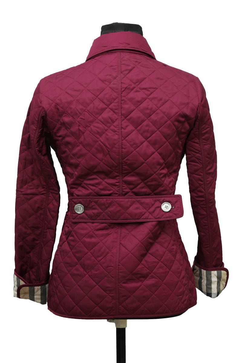 Burberry XS Quilted Women's Jacket comes in this Stunning Burgundy color. It falls under our Pristine Condition Category. No visible wear and tear or fading can be seen.