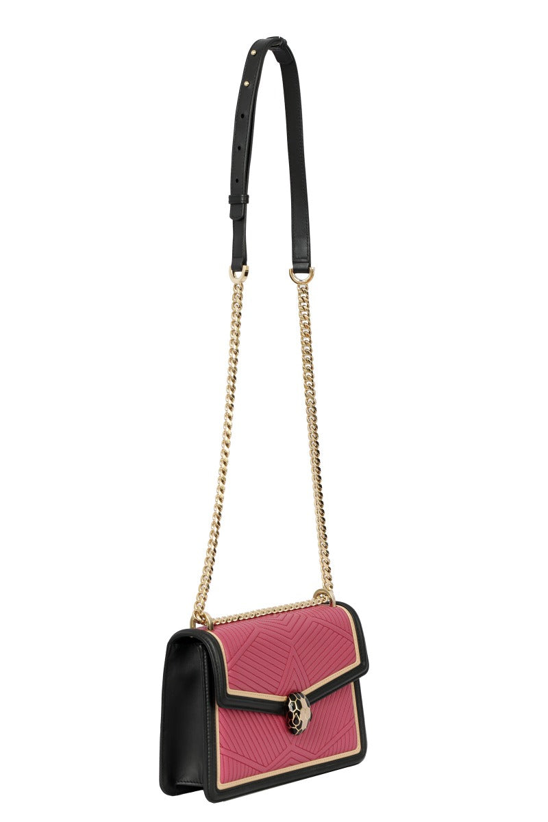 BvlgariSerpenti Forever Diamond Crossbody Bag comes in this Stunning pink and black color.It falls under our Never Been Used Condition Category. No visible wear and tear or fading can be seen.