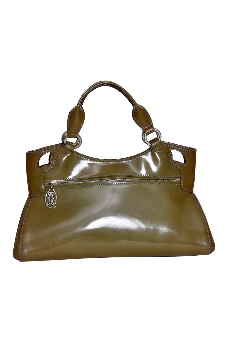 Cartier Patent Leather Marcello De Cartier Bag comes in this Stunning Olive Greencolor .It falls under our Gently Used Condition Category.