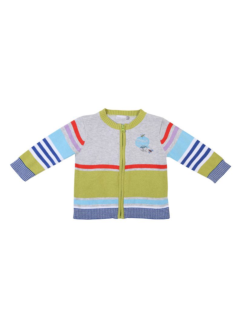 Give their casual look a colourful touch with this heather grey multicolour striped cardigan from Catimini. Crafted in soft cotton knit, the full zipper design has been finished with cute cat embroidery. Layer it over a simple tee and style with a denims and shoes.