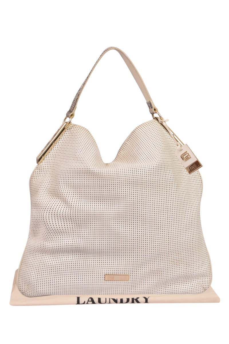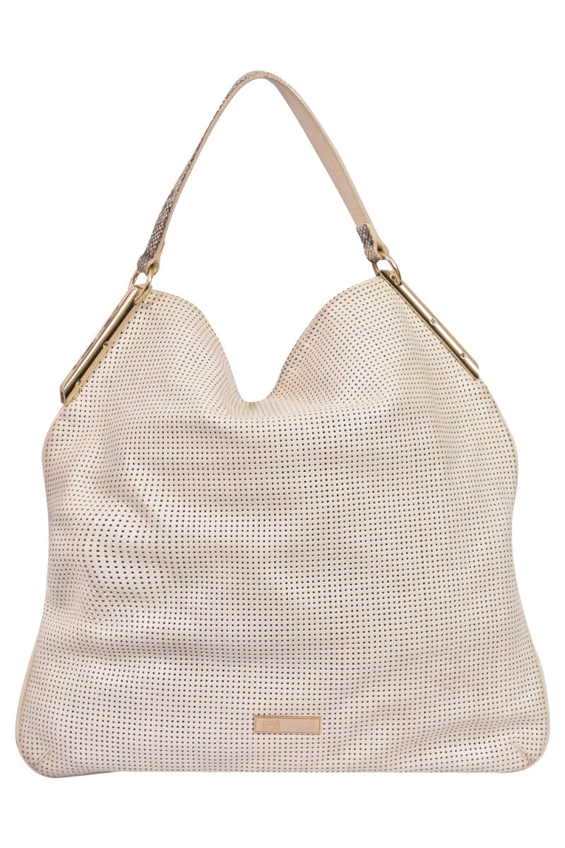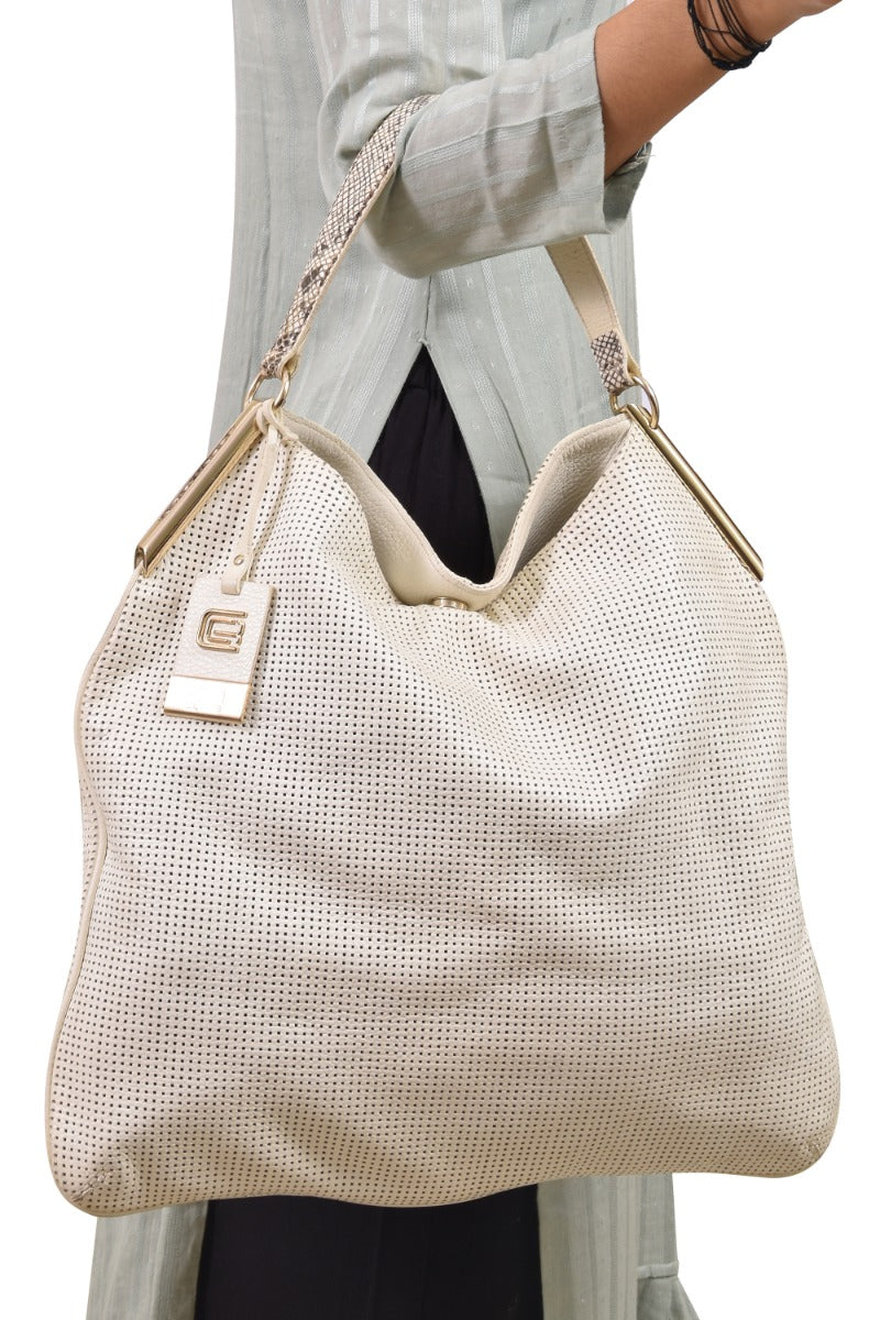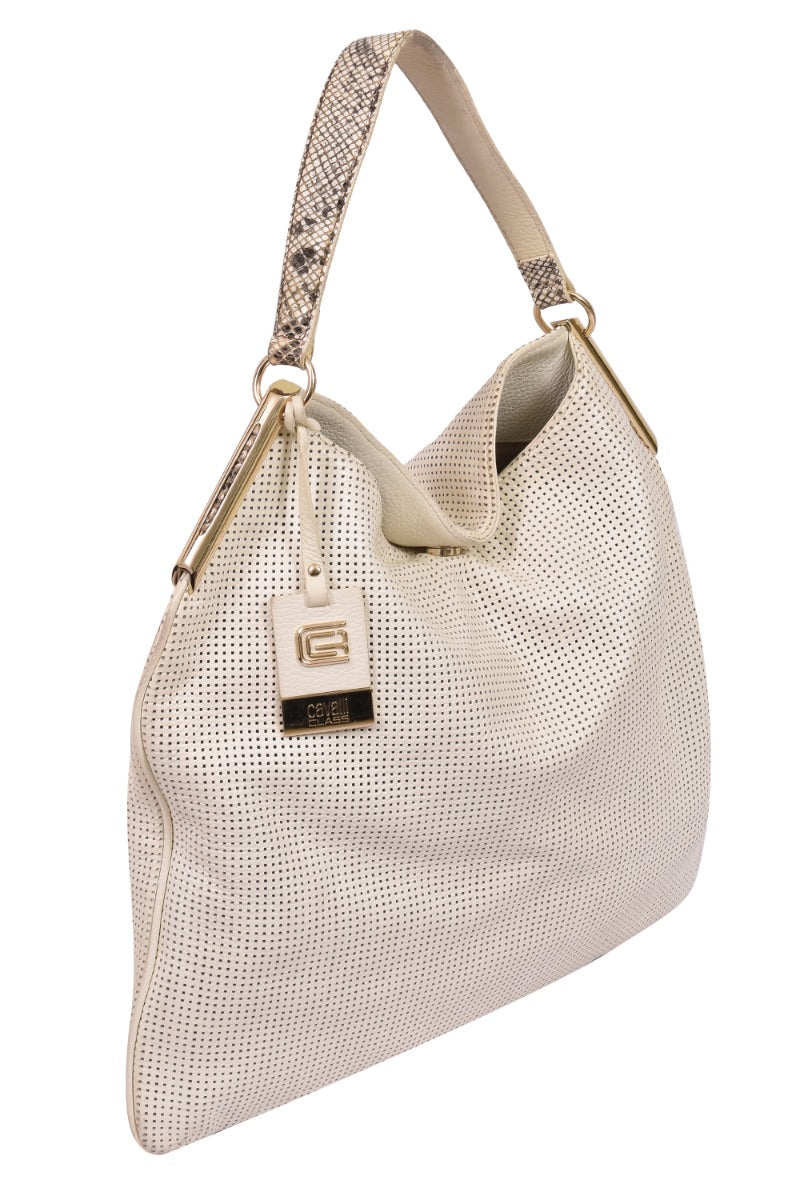 Cavalli Class White Perforated Leather Hobo Bag comes in this Stunning White color .It falls under our Good Condition Category