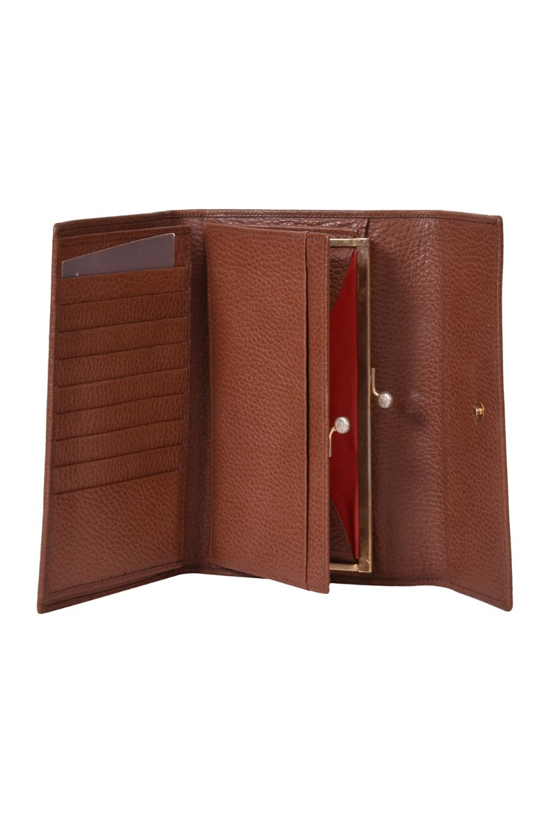 Celine Flap Wallet comes in this Stunning Brown color .It falls under our Pristine Condition Category. No visible wear and tear or fading can be seen.