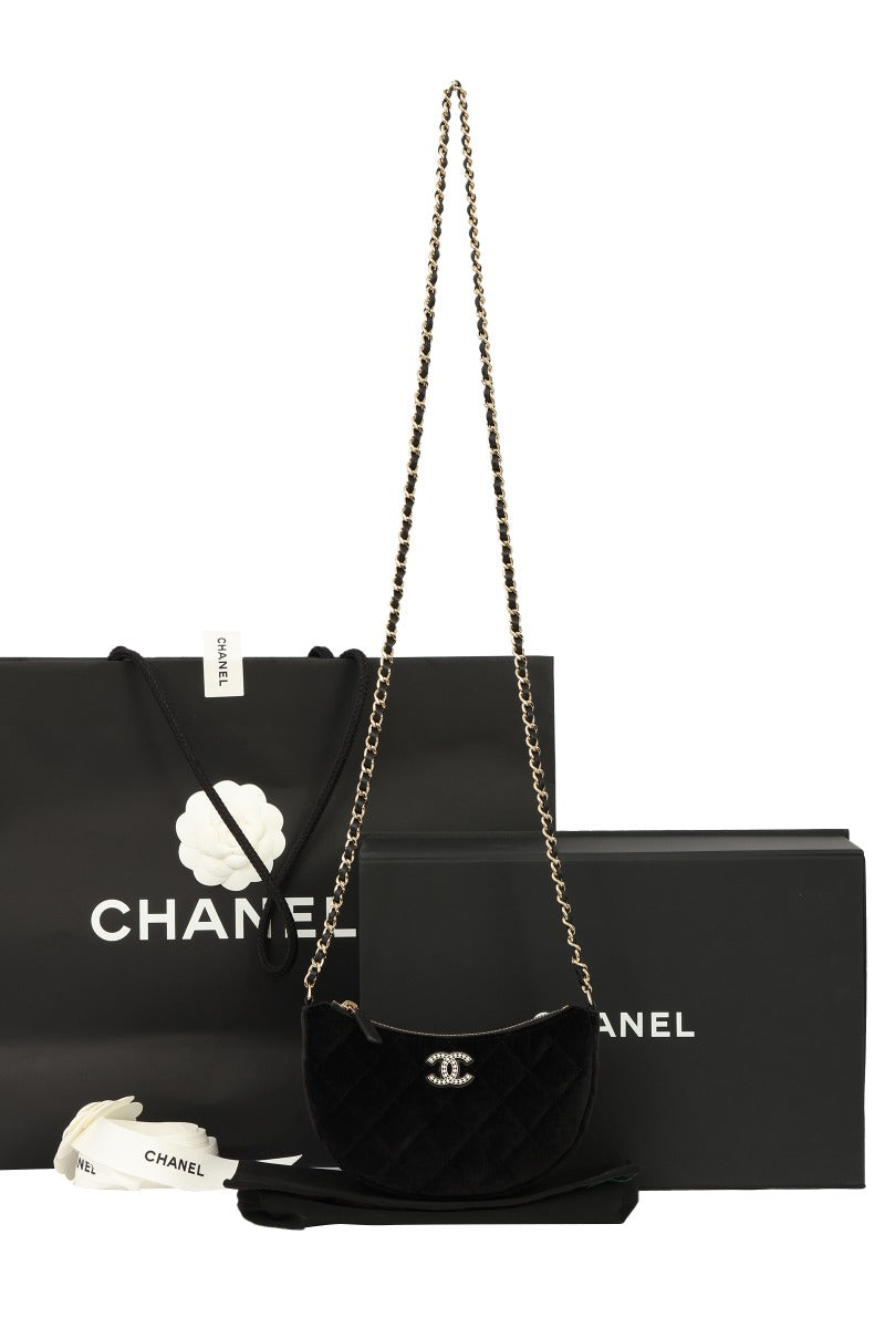 CHANEL BLACK CRESCENT SHAPE CLUTCH ON CHAIN BAG comes in this Stunning Black color .It falls under our New Without Tags Condition Category. No visible wear and tear or fading can be seen.