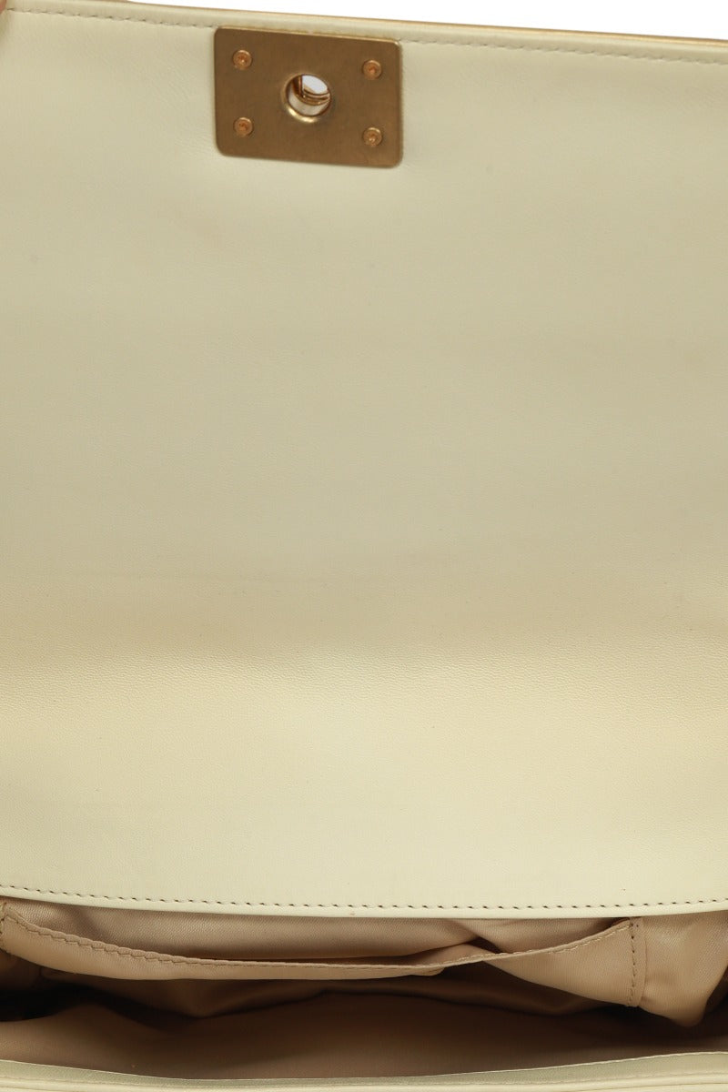 Chanel CC Quilted Rock Boy Flap Bag comes in this Stunning Beige color .It falls under our Pristine Condition Category. No visible wear and tear or fading can be seen