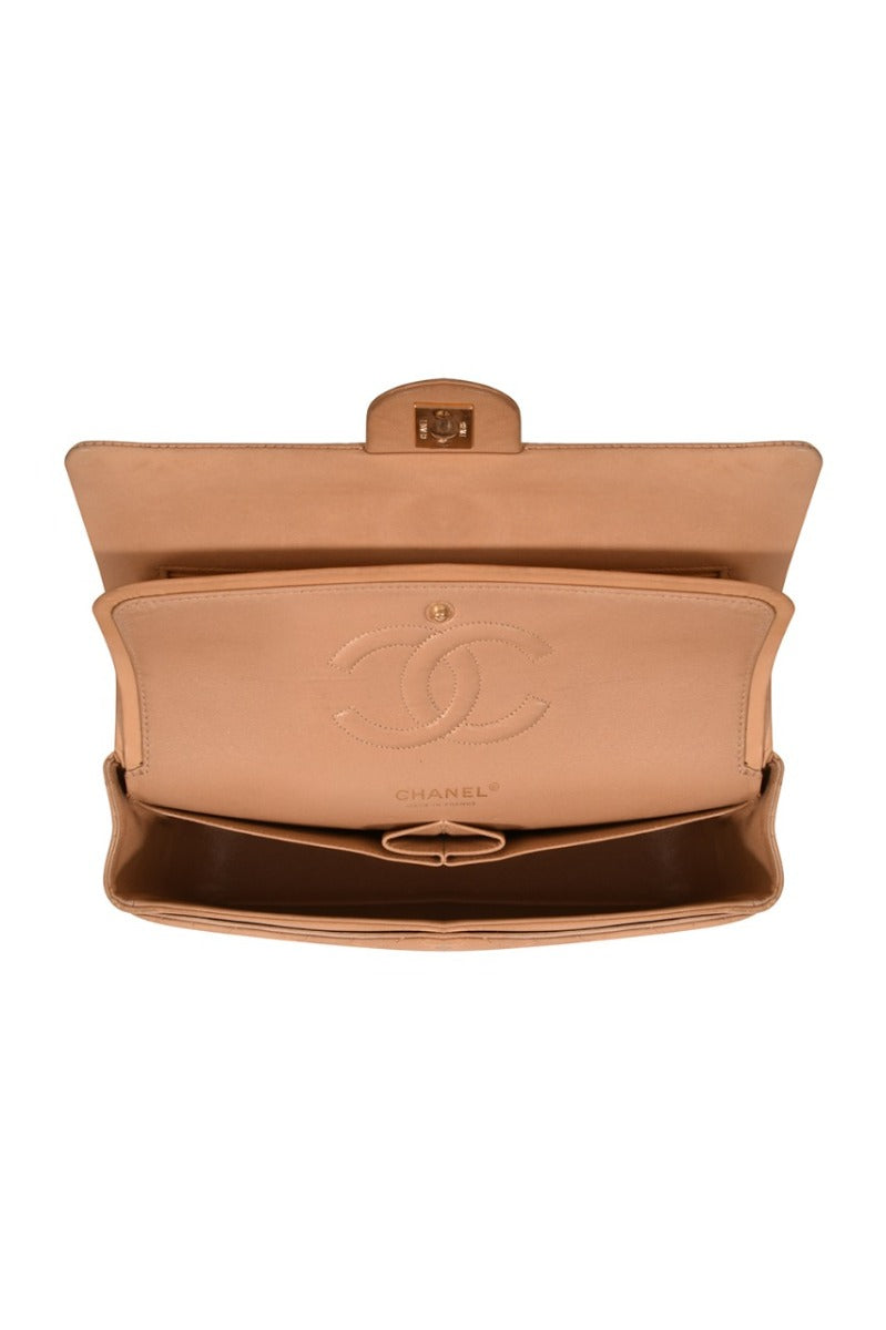 Chanel Medium Double Flap Shoulder Bag comes in this Stunning Beige color .It falls under our pristine Condition Category. No visible wear and tear or fading can be seen.