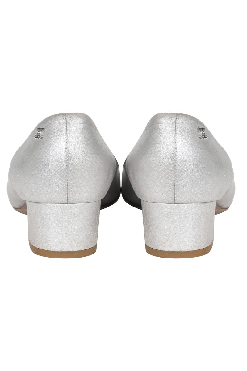 Chanel Metallic Pumps comes in this stunning Silver color. It falls under our Pristine Condition Category. No visible wear and tear or fading can be seen