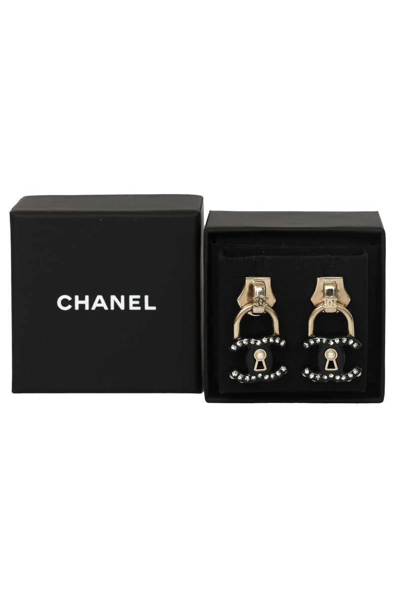 Chanel Metallic Slider Acrylic CC Pearl Earrings comes in this stunning Golden/Black Color. It falls under our LIKE NEW Condition Category
