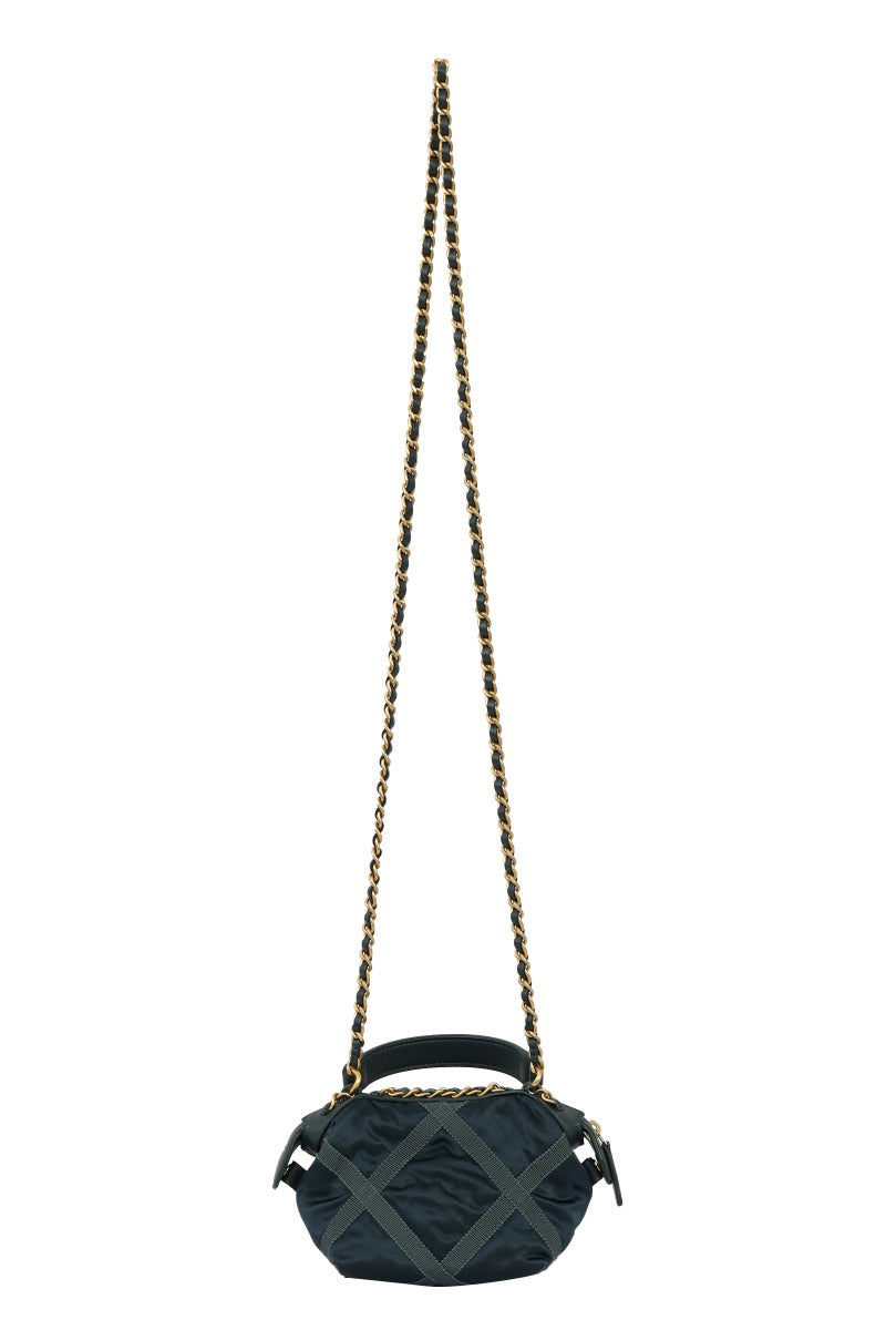 CHANEL NYLON GROSGRAIN QUILTED LIFESTYLE CLUTCH WITH CHAIN BAG comes in this Stunning Navy Blue color .It falls under our New without Tags Condition Category. No visible wear and tear or fading can be seen.