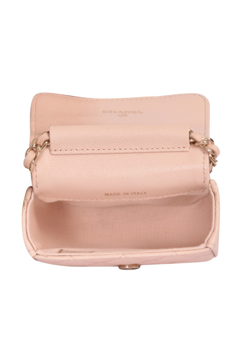 Chanel Quilted Flap Mini Sling Bag comes in this Stunning Blush Pink color .It falls under our Never Been Used Condition Category. No visible wear and tear or fading can be seen
