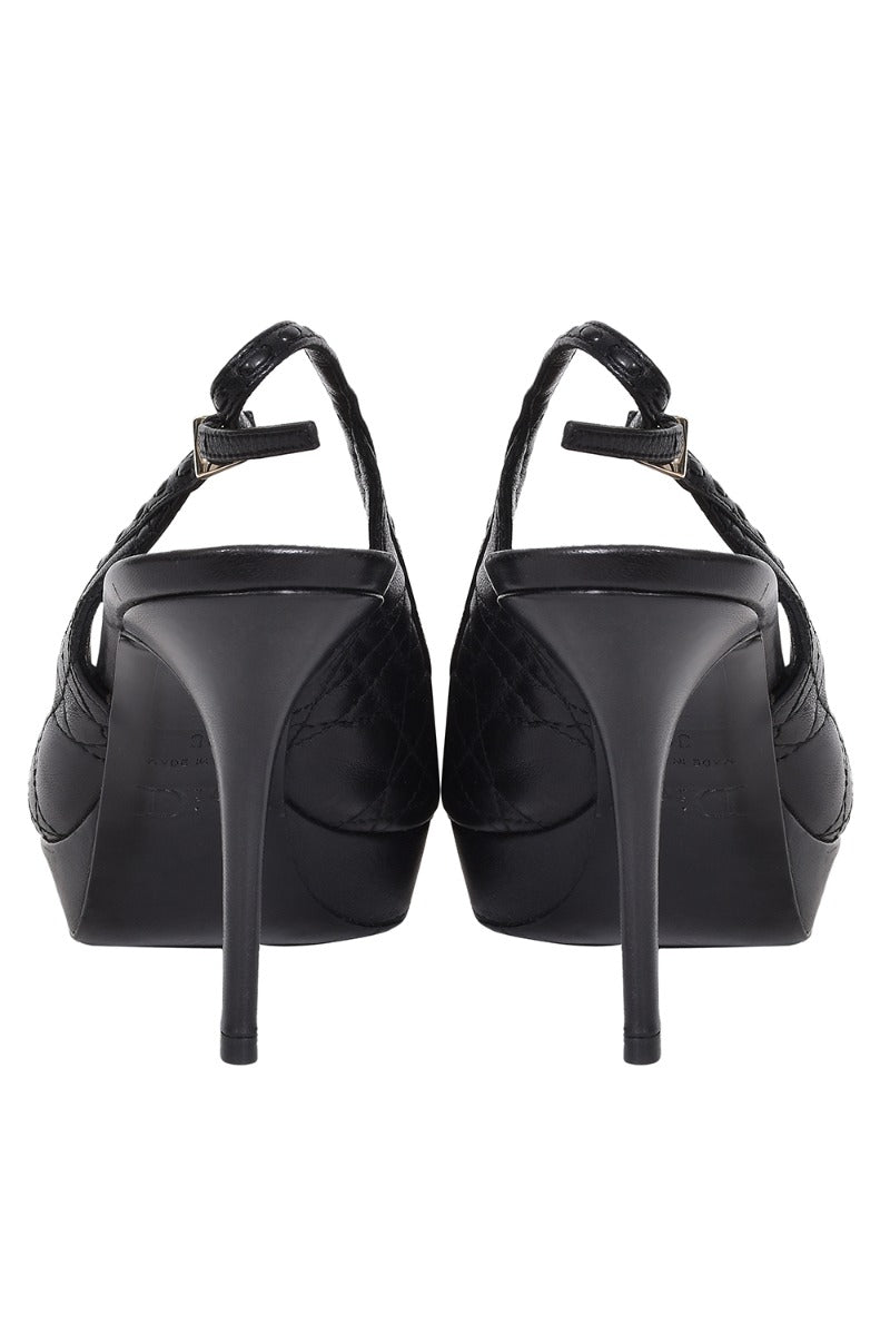 Christian Dior Cannage Black Leather Peep Toe Pumps comes in this stunning Black color. It falls under our Pristine Condition Category. No visible wear and tear or fading can be seen