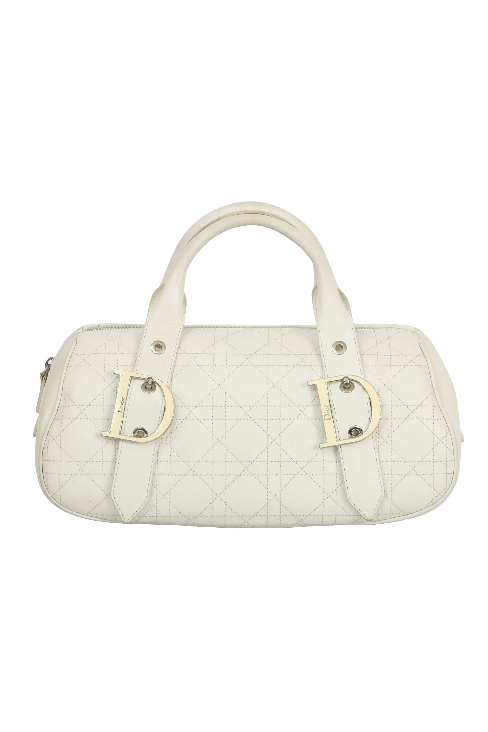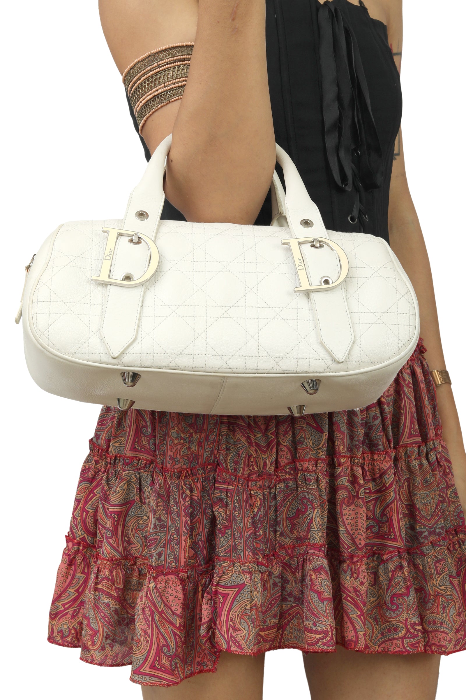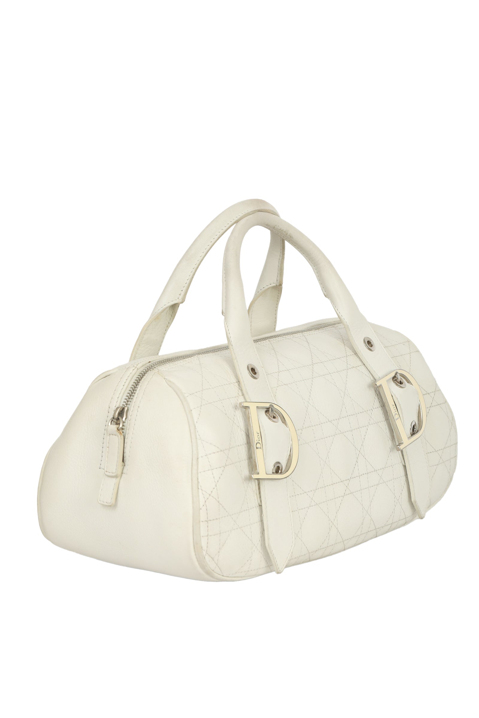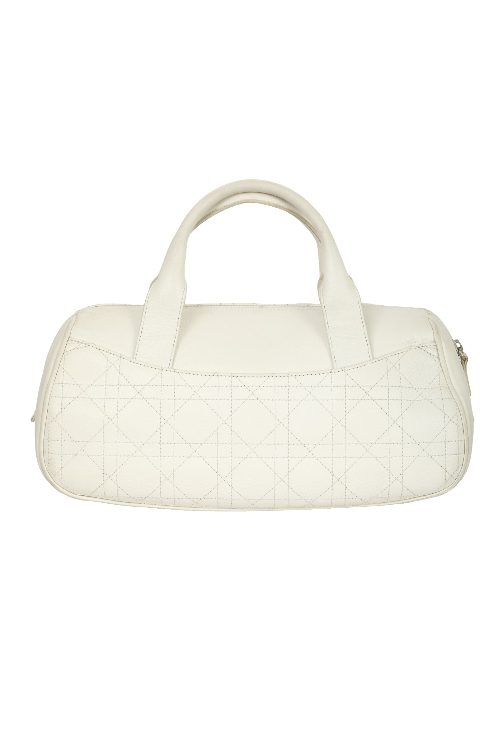 Christian Dior Cannage Leather Boston Bag comes in this Stunning White color .It falls under our Pristine Condition Category. No visible wear and tear or fading can be seen