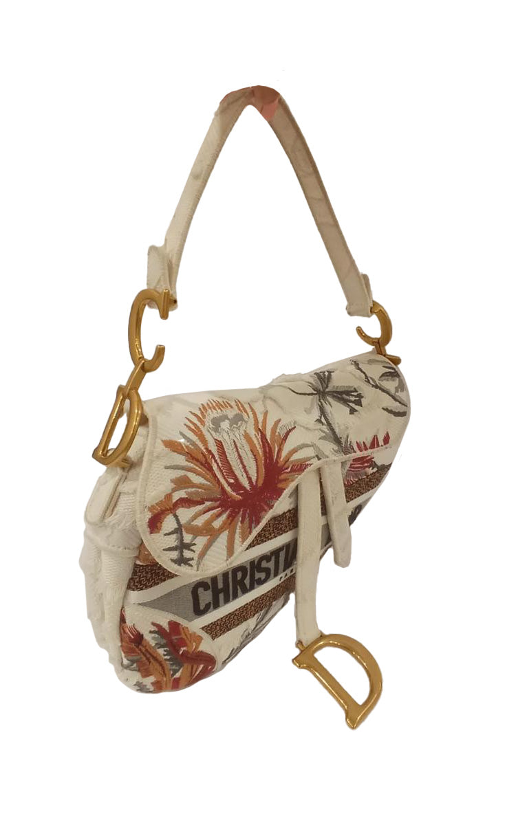 Christian Dior Embroidered Camouflage Flowers Canvas Saddle Bag comes in this Stunning Off White color .It falls under our Like New Condition Category. No visible wear and tear or fading can be seen.