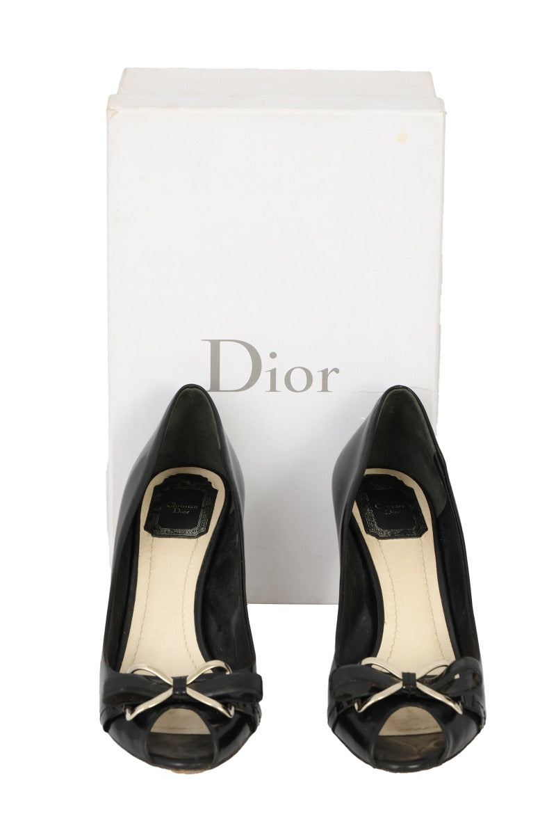 CHRISTIAN DIOR SIZE EU 39 BLACK LEATHER PEEP TOE PUMPS comes in this stunning Black color. It falls under our Pristine Condition Category.