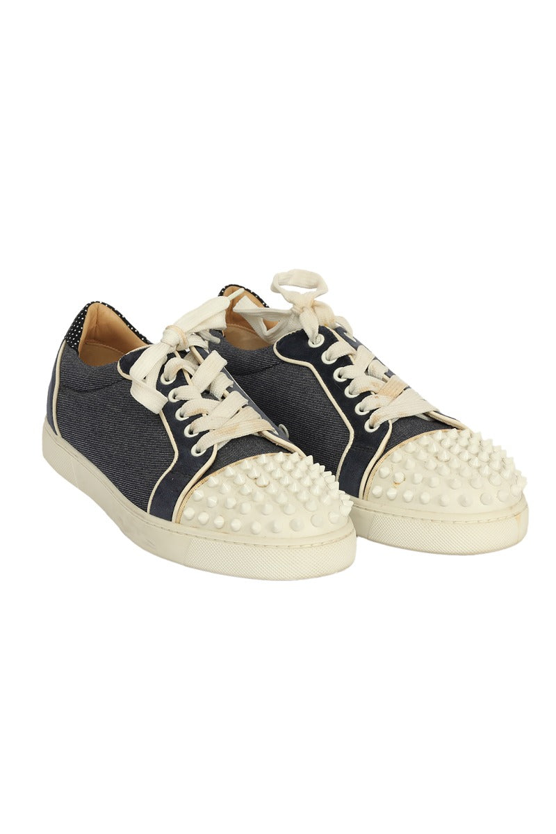 Christian Louboutin EU 37 Blue /White Spiked Sneakers in this stunning Dark Blue color. It falls under our New Without Tags Condition Category. No visible wear and tear or fading can be seen