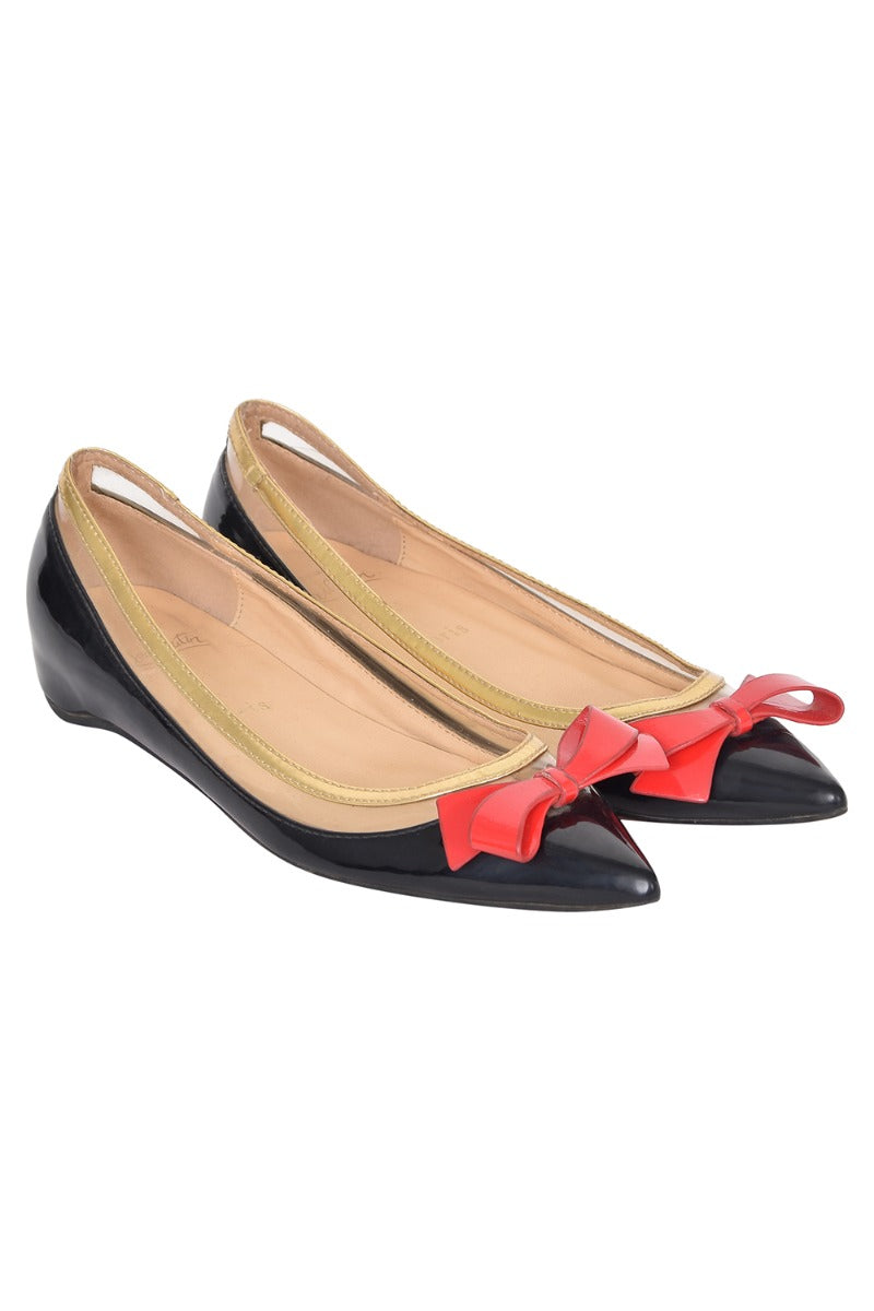 Christian Louboutin Red Bow Ballerinas comes in this stunning Black color. It falls under our Pristine Condition Category. No visible wear and tear or fading can be seen.